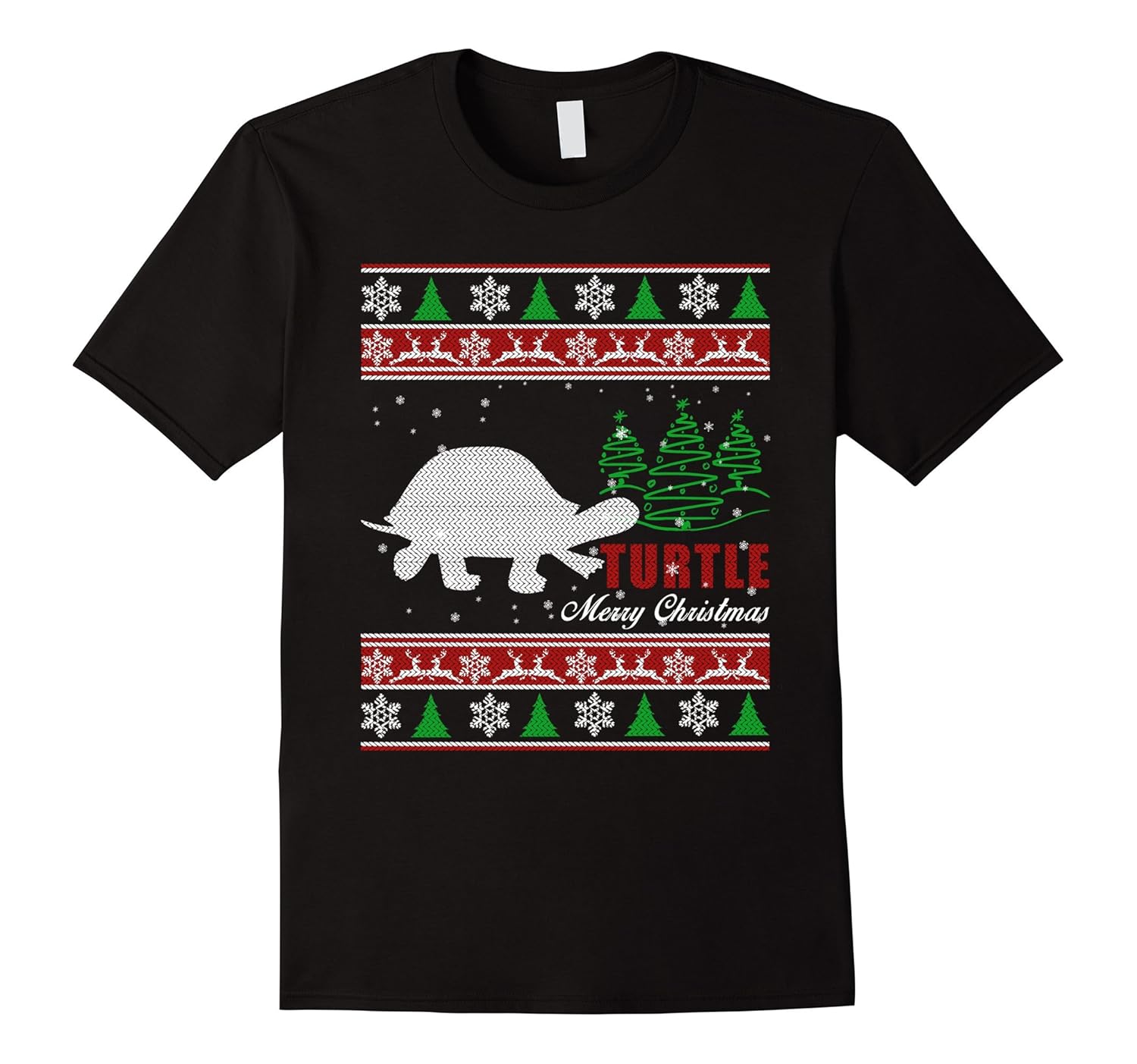 Solid colors: 100% Cotton; Heather Grey: 90% Cotton, 10% Polyester; All Other Heathers: 65% Cotton, 35% Polyester; Imported; Machine wash cold with like colors, dry low heat; Turtle Ugly Christmas Sweater tshirt; Love Turtle Ugly Christmas Sweater Holiday tshirt; Lightweight, Classic fit, Double-needle sleeve and bottom hem