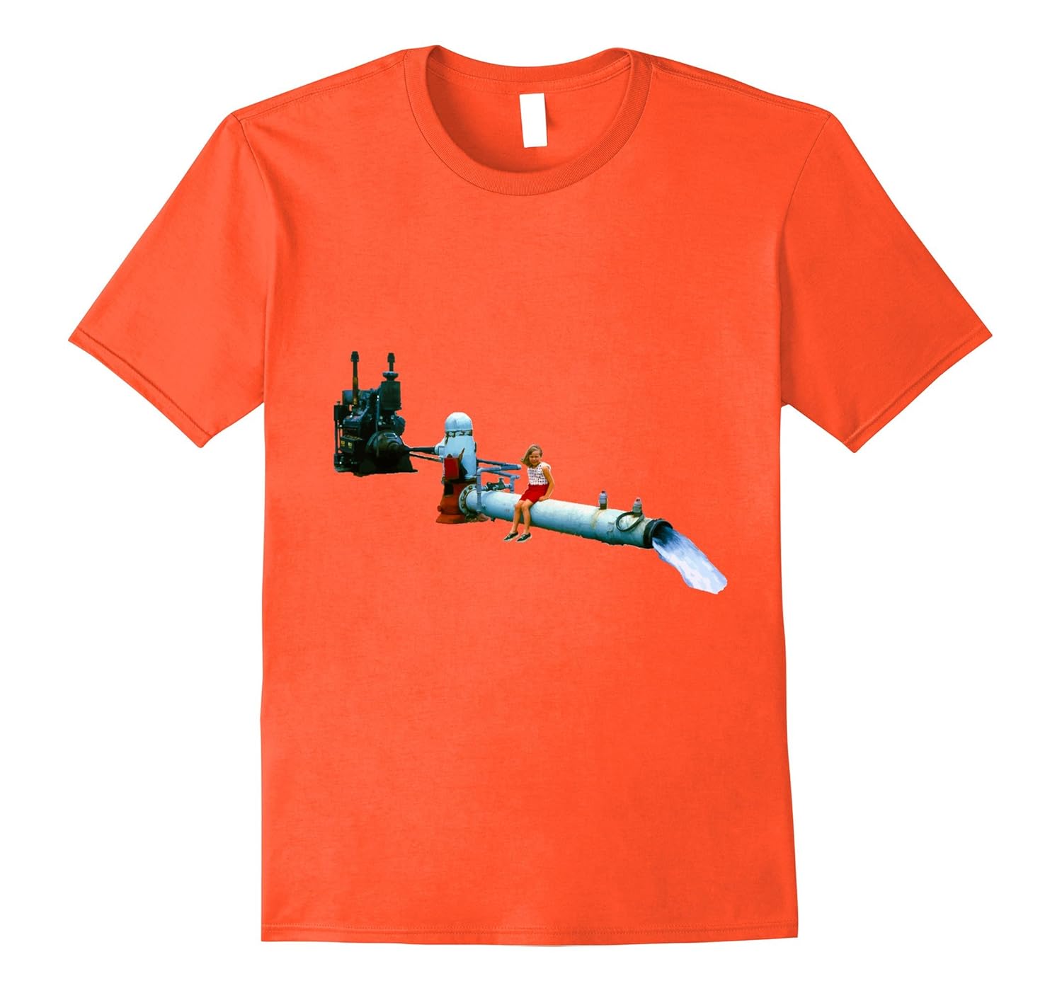 Solid colors: 100% Cotton; Heather Grey: 90% Cotton, 10% Polyester; All Other Heathers: 65% Cotton, 35% Polyester, Imported, Machine wash cold with like colors, dry low heat, Original artwork t-shirt depicting the farmer”s daughter sitting on an irrigation well pumping water from the Ogallala Aquifer, Please order a size larger if you prefer a loose fitting t-shirt, Lightweight, Classic fit, Double-needle sleeve and bottom hem