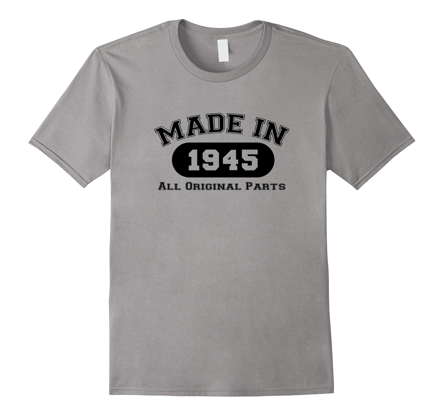 Solid colors: 100% Cotton; Heather Grey: 90% Cotton, 10% Polyester; All Other Heathers: 65% Cotton, 35% Polyester, Imported, Machine wash cold with like colors, dry low heat, VERY SOFT FABRIC: This funny Made in 1945 T-Shirt is a perfect birthday gift for 2017. Surprise your loved ones with a special shirt for turning 72. GREAT FIT: If you prefer a loose fit consider ordering one size larger. This 1945 All Original Parts TShirt will make the 72nd birthday of your loved ones special. They will always remember their special day when wearing this shirt for years to come!, Lightweight, Classic fit, Double-needle sleeve and bottom hem