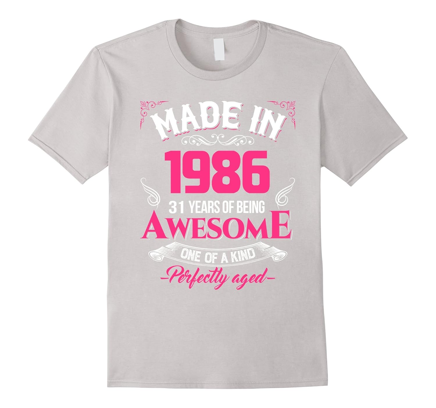 Solid colors: 100% Cotton; Heather Grey: 90% Cotton, 10% Polyester; All Other Heathers: 65% Cotton, 35% Polyester, Imported, Machine wash cold with like colors, dry low heat, Best gift for the 31th birthday. Hip hop style graphic tee shirt for anyone made in 1986 and; will be turning 31 years old 1986. Awesome gift for your brother,sister,mom,dad,wife,husband,girlfriend,boyfriend; for friends; family. Great for anyone born in 1986, Awesome since 1986 31 Years Old Birtday – 31th Birthday Gift idea for someone born in 1986 This graphic b-day tee shirt looks good in several color choices and range of sizes for people you love!, Lightweight, Classic fit, Double-needle sleeve and bottom hem