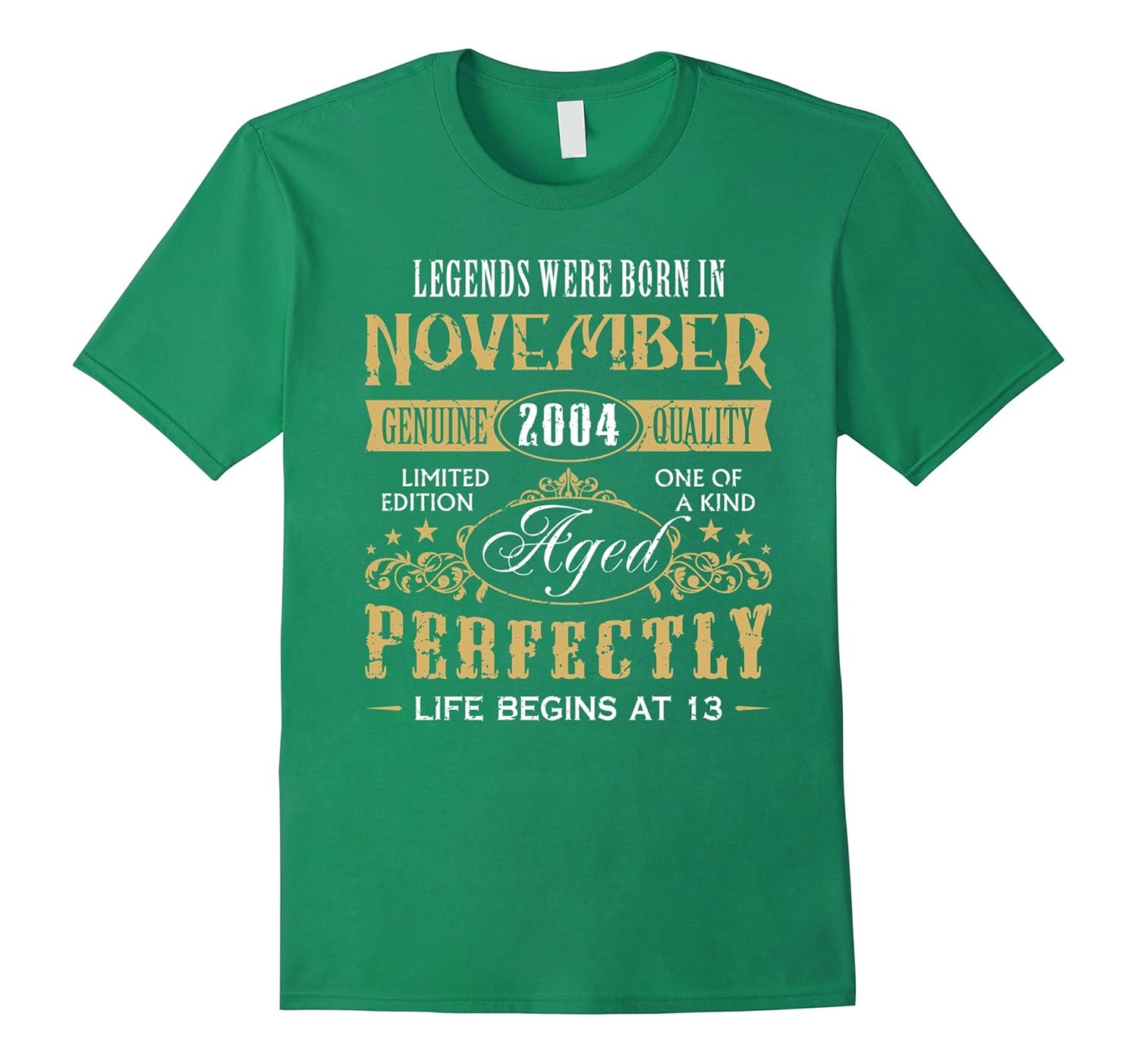 Solid colors: 100% Cotton; Heather Grey: 90% Cotton, 10% Polyester; All Other Heathers: 65% Cotton, 35% Polyester, Imported, Machine wash cold with like colors, dry low heat, November original design by YAKS that is featuring November 2004 made in a vintage style for teens with very nice and cute saying on the shirt what makes a perfect gift for thirteen years old in November for 13th birthday party for a teenager. An awesome b-day gift for teenagers made in 2004 November Aged Perfectly Limited Edition novelty t-shirt is a perfect birthday gift for him her someone special turning 13 years old thirteen-year-old boy or a girl in November for your son and for daughter. Lightweight, Classic fit, Double-needle sleeve and bottom hem