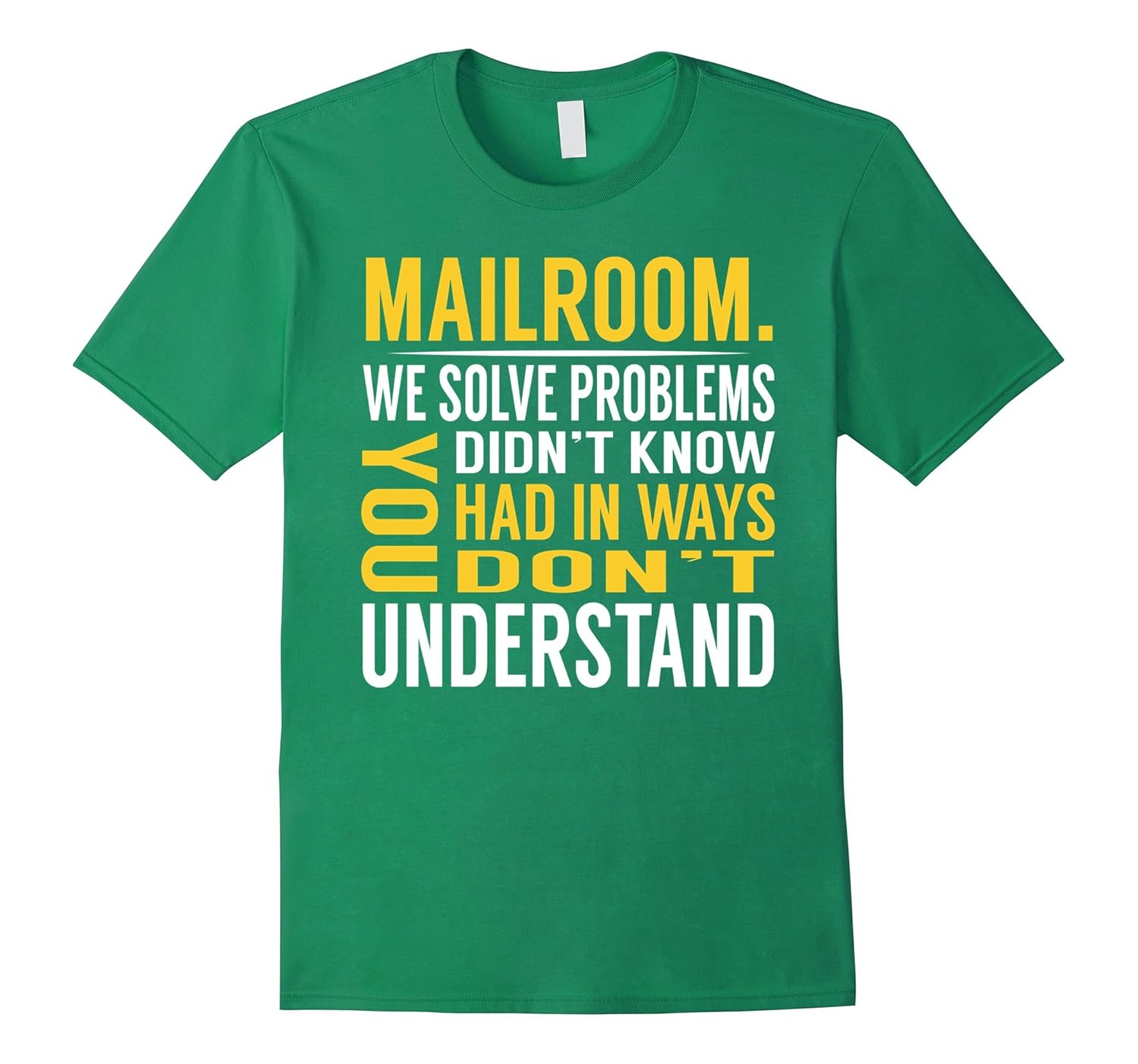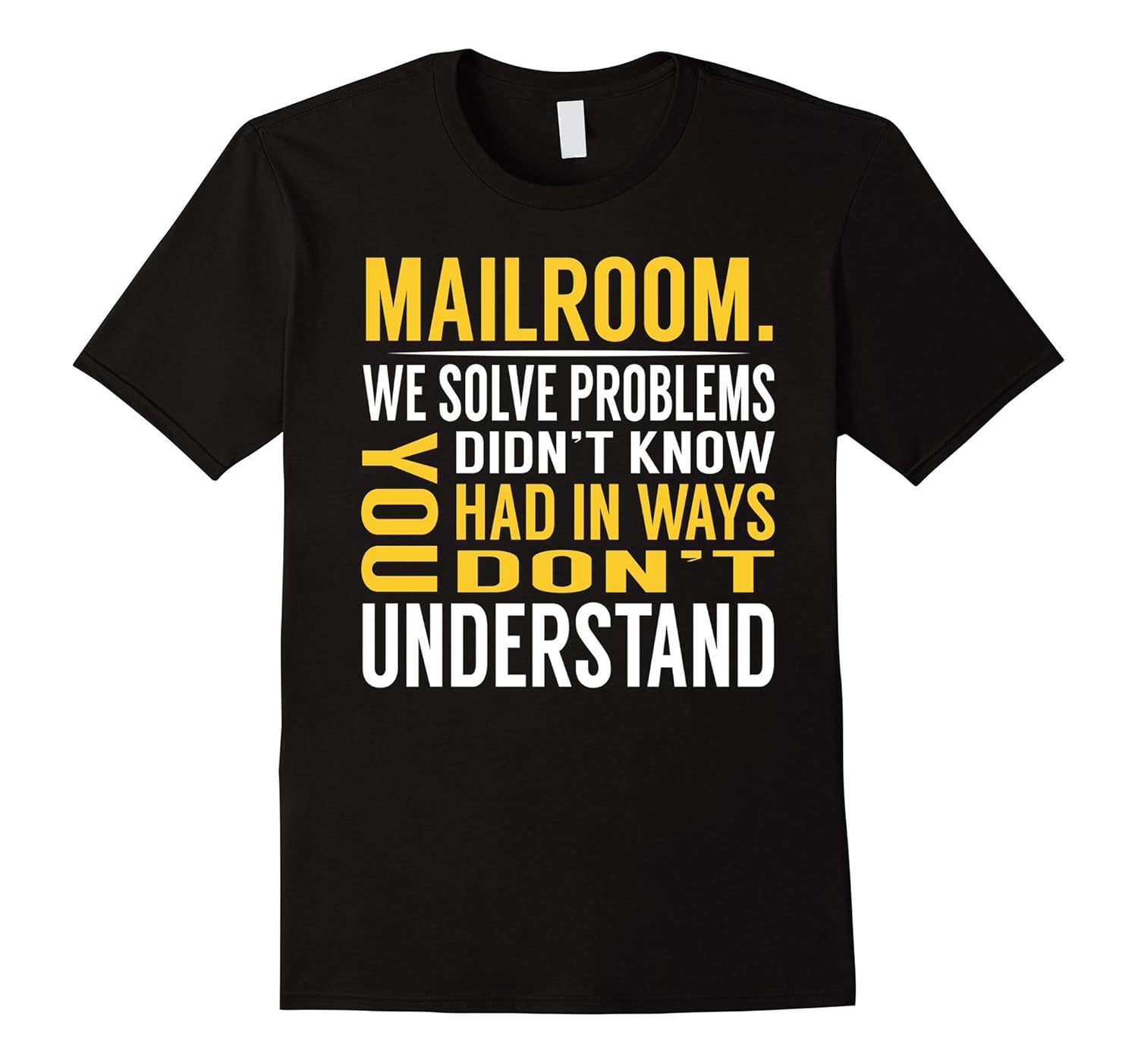 Solid colors: 100% Cotton; Heather Grey: 90% Cotton, 10% Polyester; All Other Heathers: 65% Cotton, 35% Polyester, Imported, Machine wash cold with like colors, dry low heat, Mailroom funny apparel novelty accessories costume outfits farbic dress shirt tshirt gifts funny ideas for women men, Mailroom We Solve Problems You Didn”t Know You Had In Ways You Don”t Understand TShirt, Great gift shirt tshirt for Mailroom, Lightweight, Classic fit, Double-needle sleeve and bottom hem