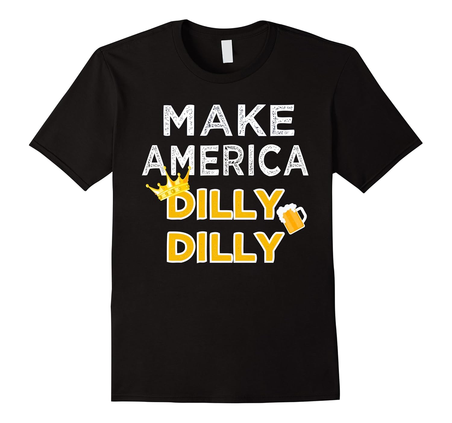 Solid colors: 100% Cotton; Heather Grey: 90% Cotton, 10% Polyester; All Other Heathers: 65% Cotton, 35% Polyester, Imported, Machine wash cold with like colors, dry low heat, Funny Dilly Dilly shirt mashes politics, beer, humor and the crown. Keep America out of the pit of misery. Make America Dilly Dilly funny beer t-shirt. Lightweight, Classic fit, Double-needle sleeve and bottom hem