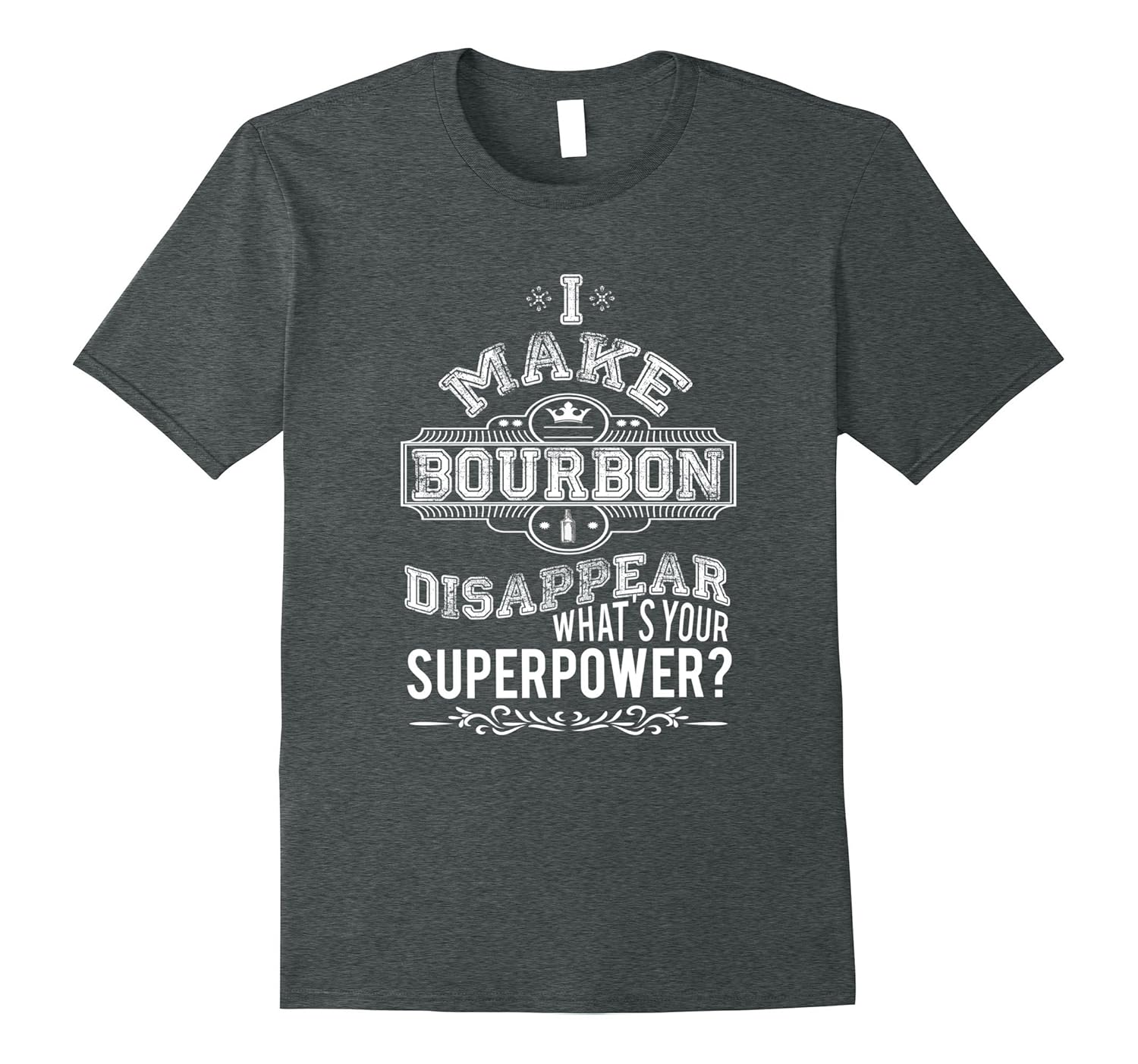 Solid colors: 100% Cotton; Heather Grey: 90% Cotton, 10% Polyester; All Other Heathers: 50% Cotton, 50% Polyester; Imported; Machine wash cold with like colors, dry low heat; I Make Bourbon Disappear is a perfect slogan for bourbon and whiskey enthusiasts. If you have family or friends in Kentucky this is the perfect shirt for them. Bourbon and whisky lovers will enjoy.; This unique 100% custom designed shirt makes a great gift for anyone that lives in Kentucky, loves to drink, loves alcohol, or for a sister, brother, dad for Fathers day, birthday present for a wife or husband, or Christmas gift for a boyfriend.; Lightweight, Classic fit, Double-needle sleeve and bottom hem