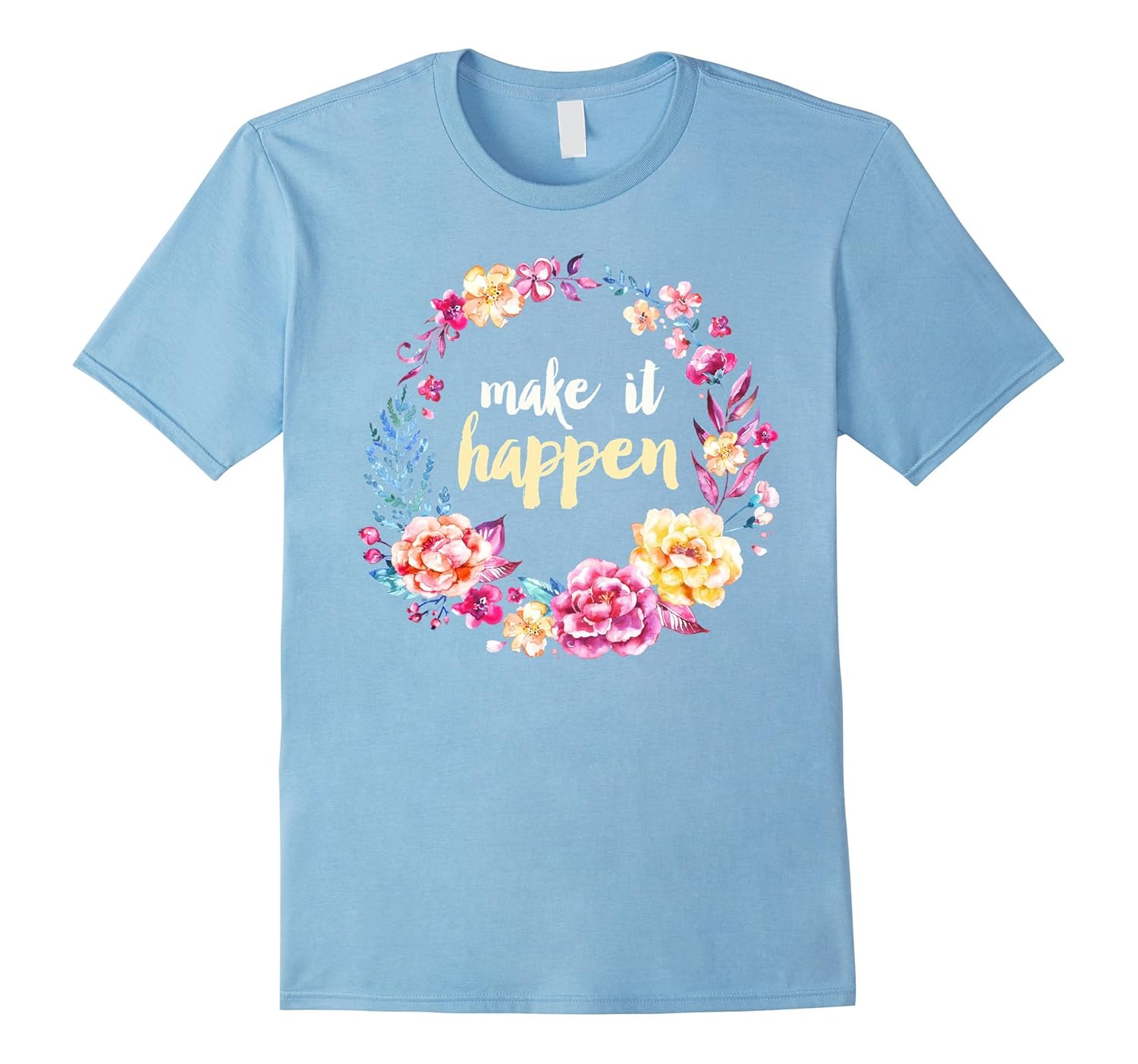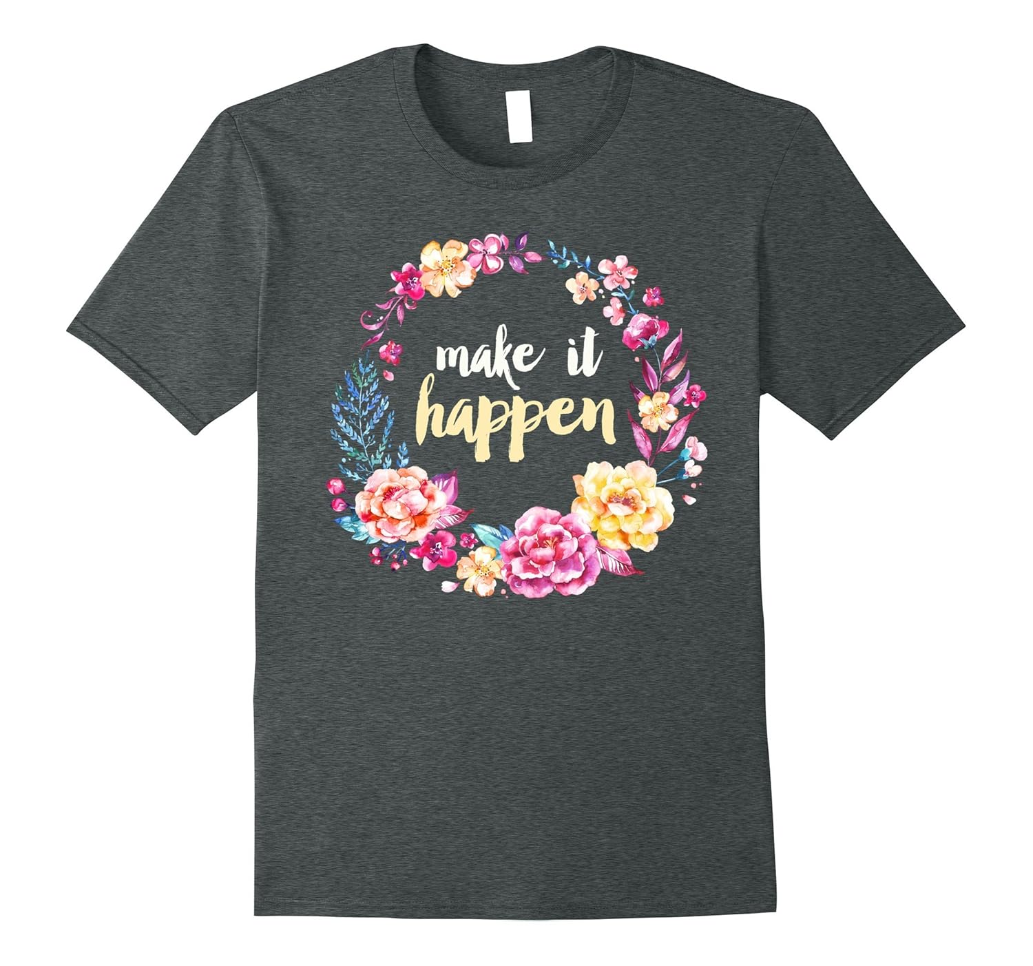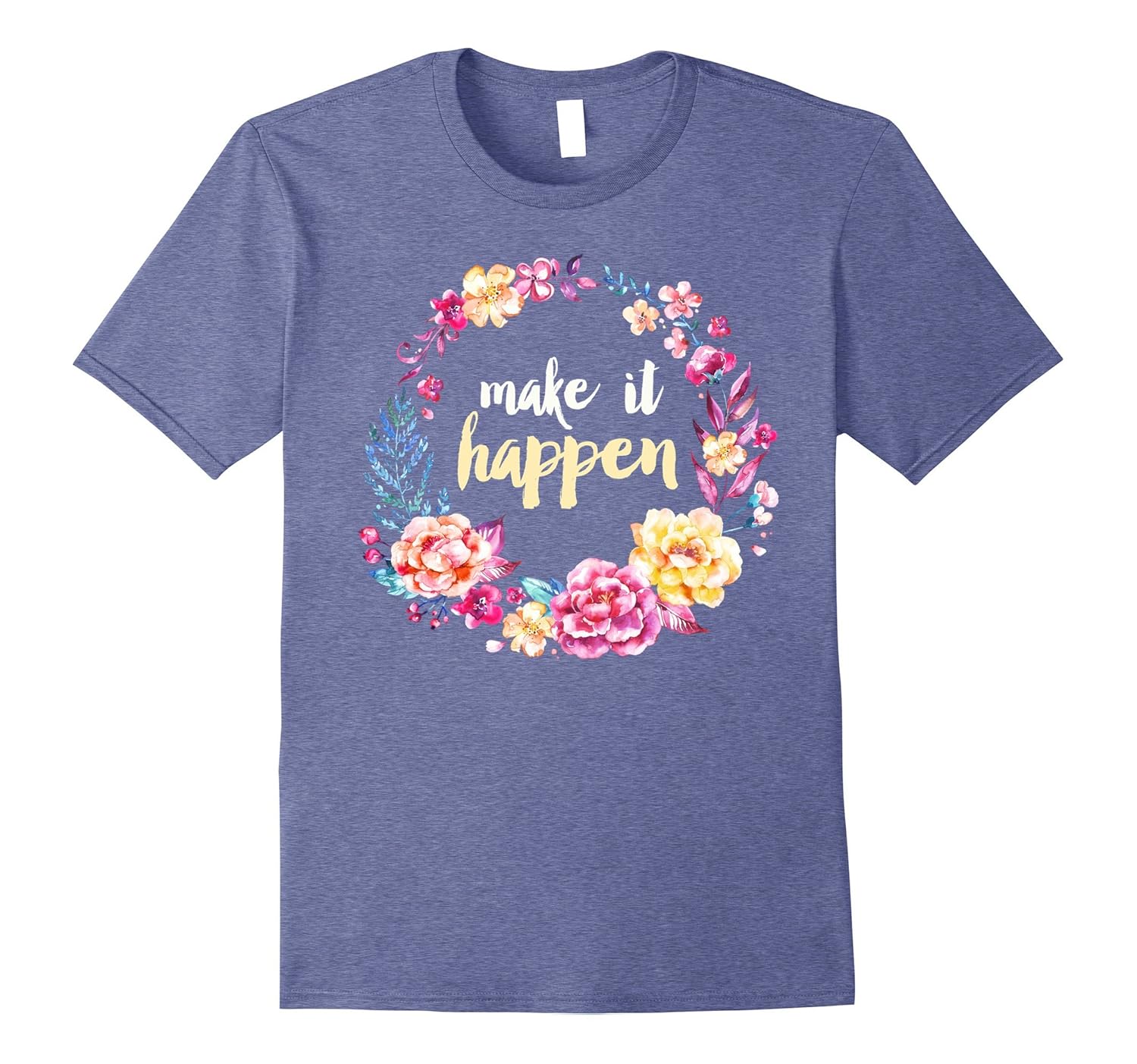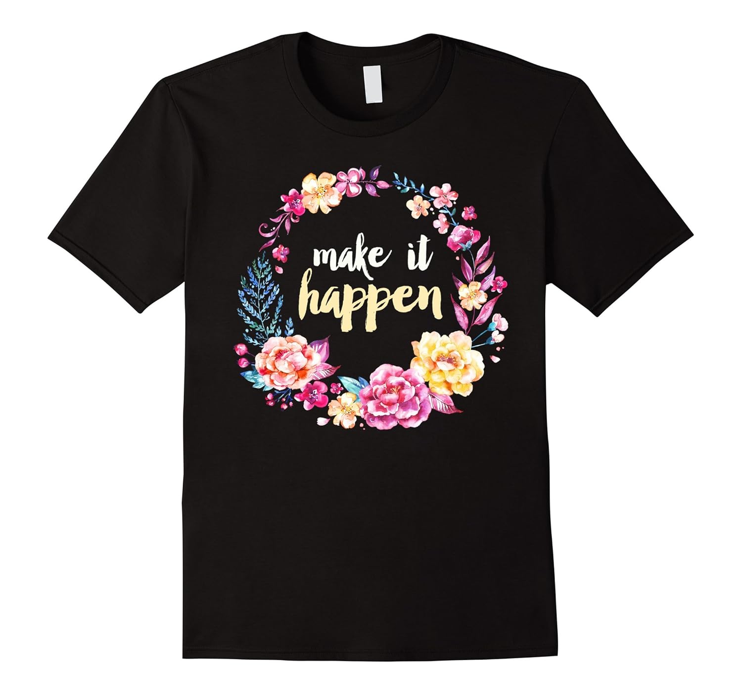 Make it Happen, Floral Wreath Script Typography Tee-ANZ