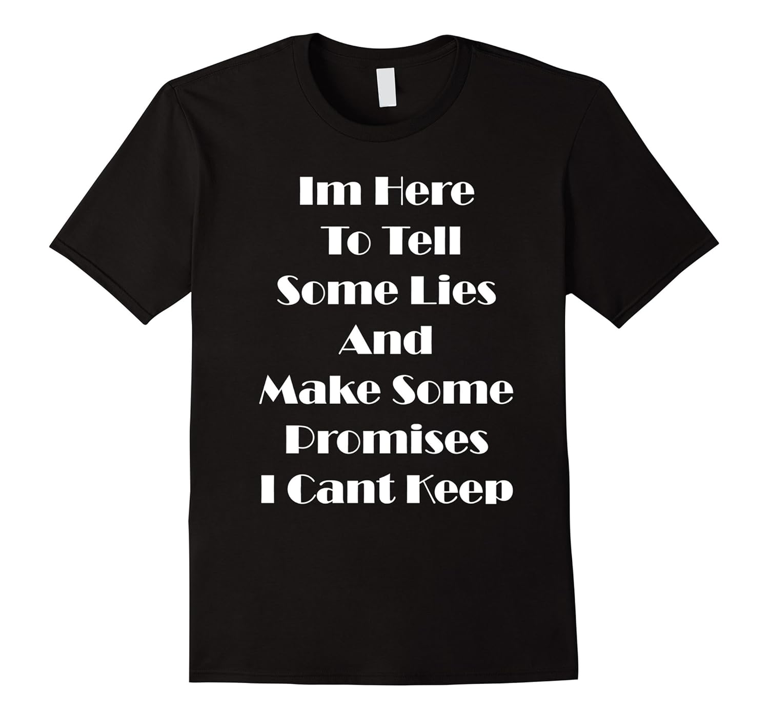 Solid colors: 100% Cotton; Heather Grey: 90% Cotton, 10% Polyester; All Other Heathers: 65% Cotton, 35% Polyester, Imported, Machine wash cold with like colors, dry low heat, Im Here to Tell Some Lies and Make Some Promises I Cant Keep T Shirt, Tee makes a gift for men, women and kids, Boys or girls. Group family shirts for a Son, Husband, Daughter or wife. Silly novelty shirt for an Mom, Dad and families, Lightweight, Classic fit, Double-needle sleeve and bottom hem