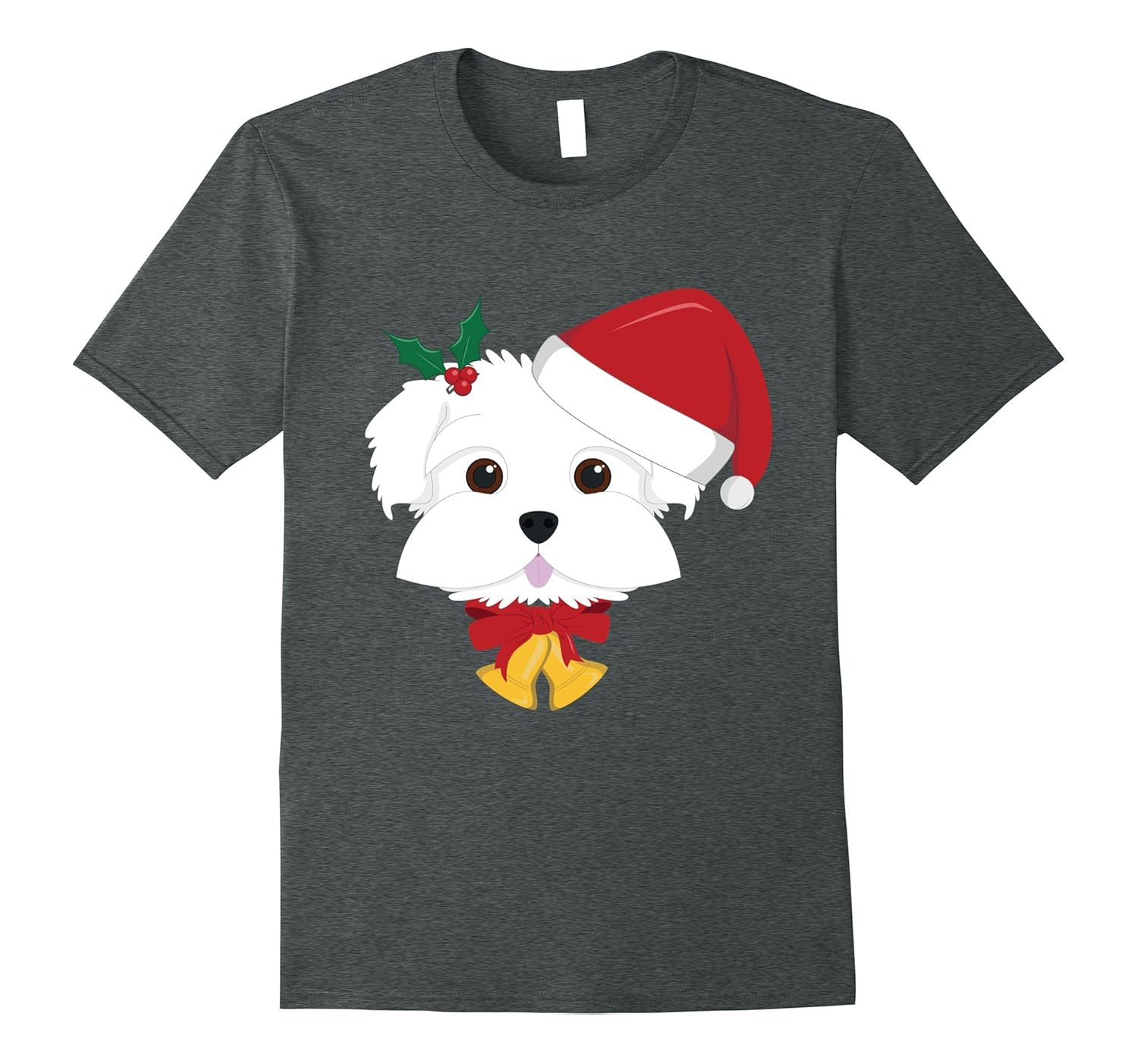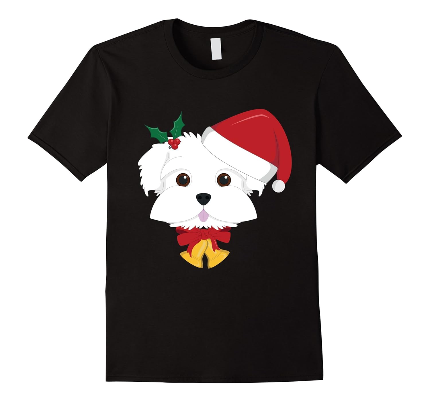 Maltese Dog With Red Santa’s Hat And Xmas Bells Xmas Tshirt-ANZ