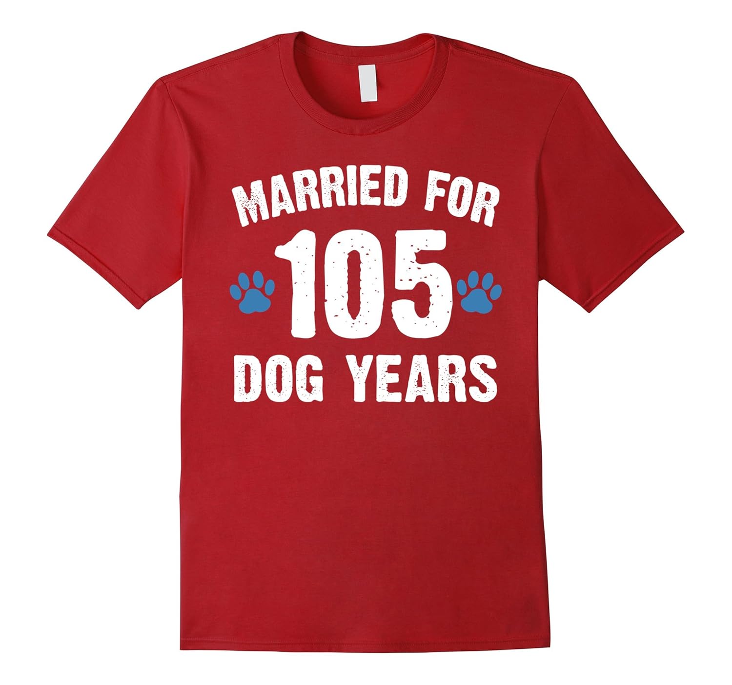 Solid colors: 100% Cotton; Heather Grey: 90% Cotton, 10% Polyester; All Other Heathers: 65% Cotton, 35% Polyester; Imported; Machine wash cold with like colors, dry low heat; Married for 105 dog years in vintage distressed style t-shirt for couple or for all people who celebrate 15th wedding anniversary. If youre still happy married to him or her 15 years later, get this sarcastic t-shirt now!; Best birthday present for dog lovers, dog parents. Funny Andamp; great 15th wedding anniversary gift for husband, wife, mom, dad, sister, brother, son, daughter, aunt, uncle. Make sure to get matching outfits for your lovely partner!; Lightweight, Classic fit, Double-needle sleeve and bottom hem
