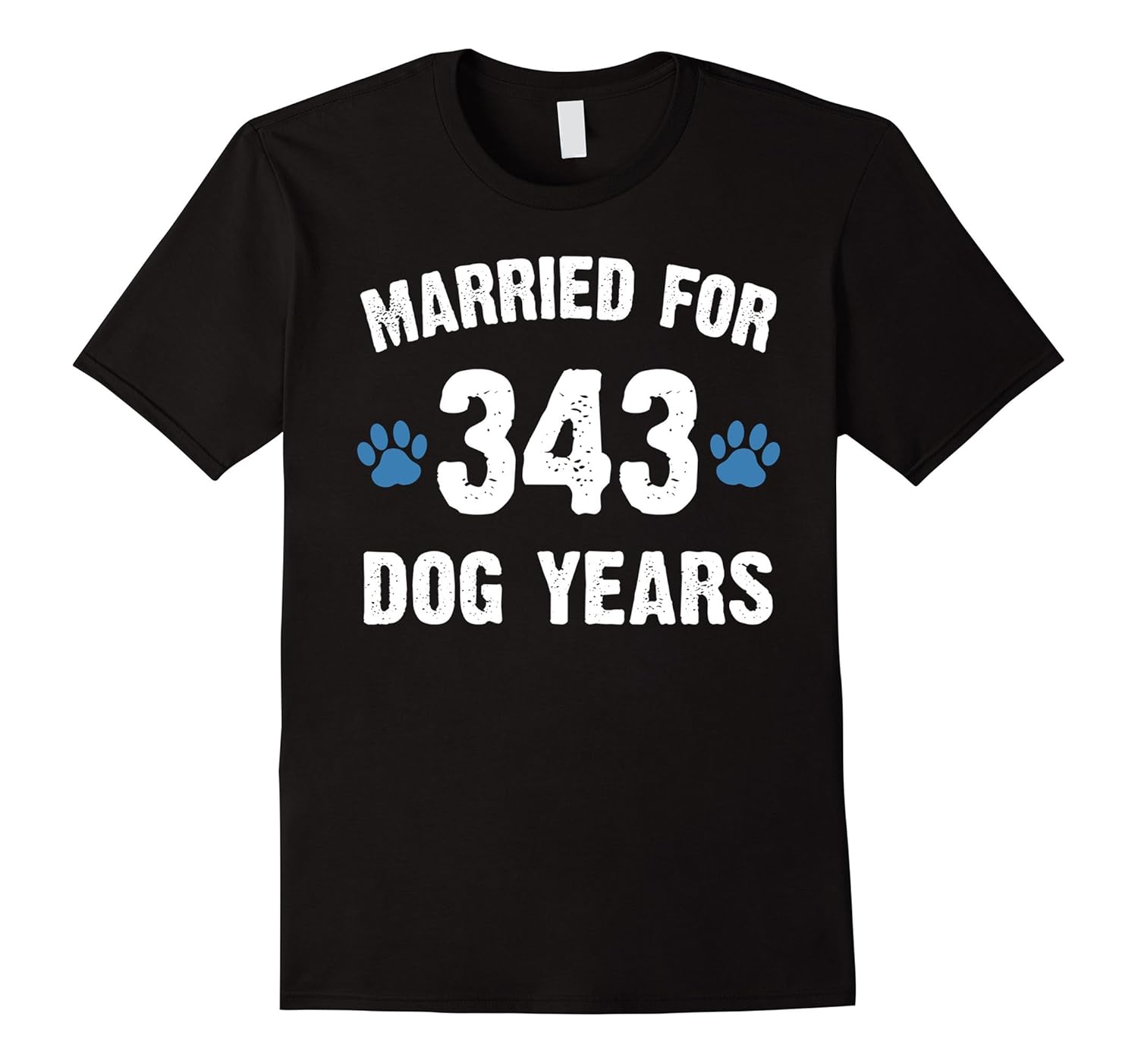 Solid colors: 100% Cotton; Heather Grey: 90% Cotton, 10% Polyester; All Other Heathers: 65% Cotton, 35% Polyester; Imported; Machine wash cold with like colors, dry low heat; Married for 343 dog years in vintage distressed style t-shirt for couple or for all people who celebrate 49th wedding anniversary.If youre still happy married to him or her 49 years later, get this sarcastic t-shirt now!; Best birthday present for dog lovers, dog parents. Funny Andamp; great 49th wedding anniversary gift for husband, wife, mom, dad, sister, brother, son, daughter, aunt, uncle. Make sure to get matching outfits for your lovely partner!; Lightweight, Classic fit, Double-needle sleeve and bottom hem