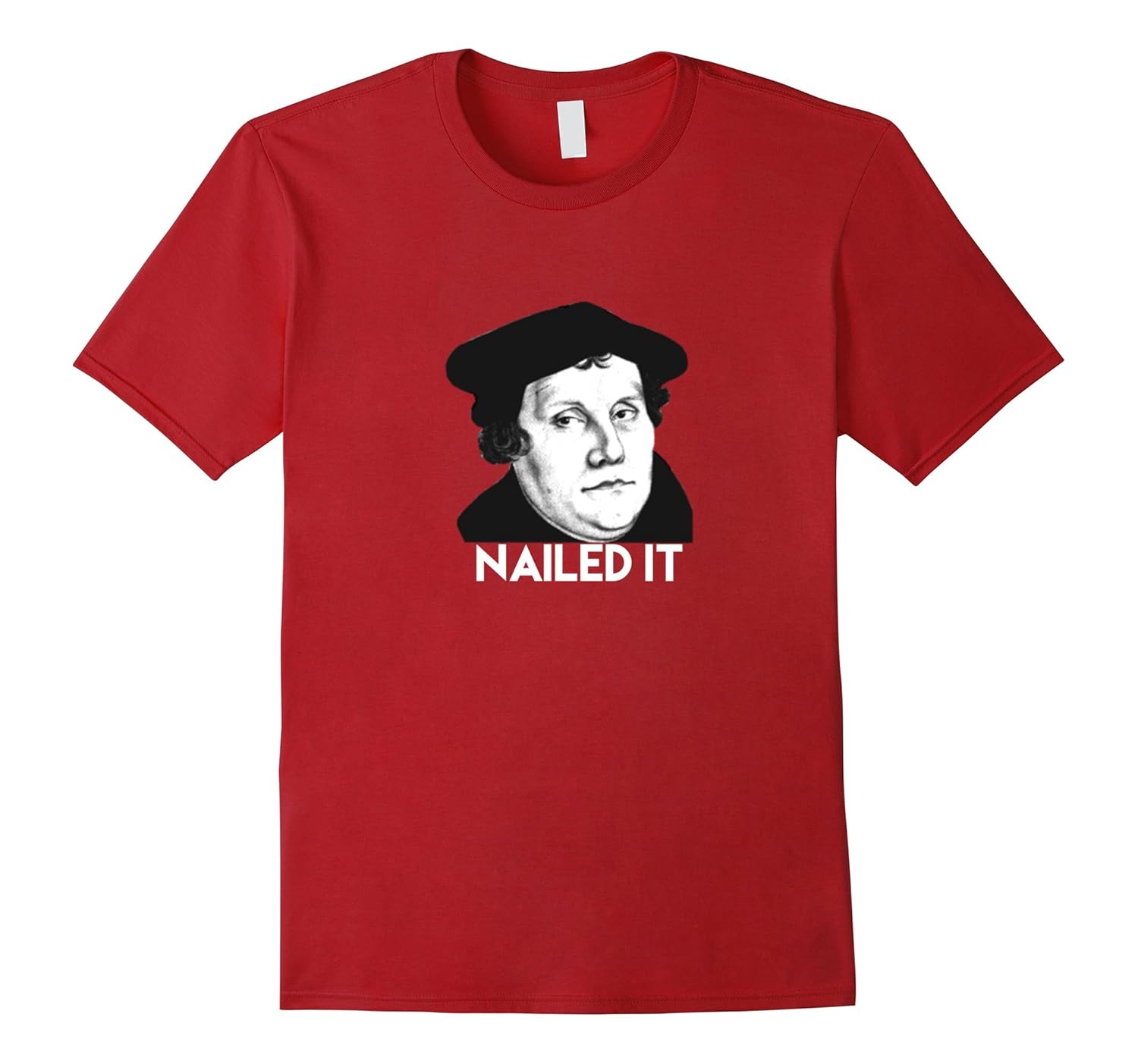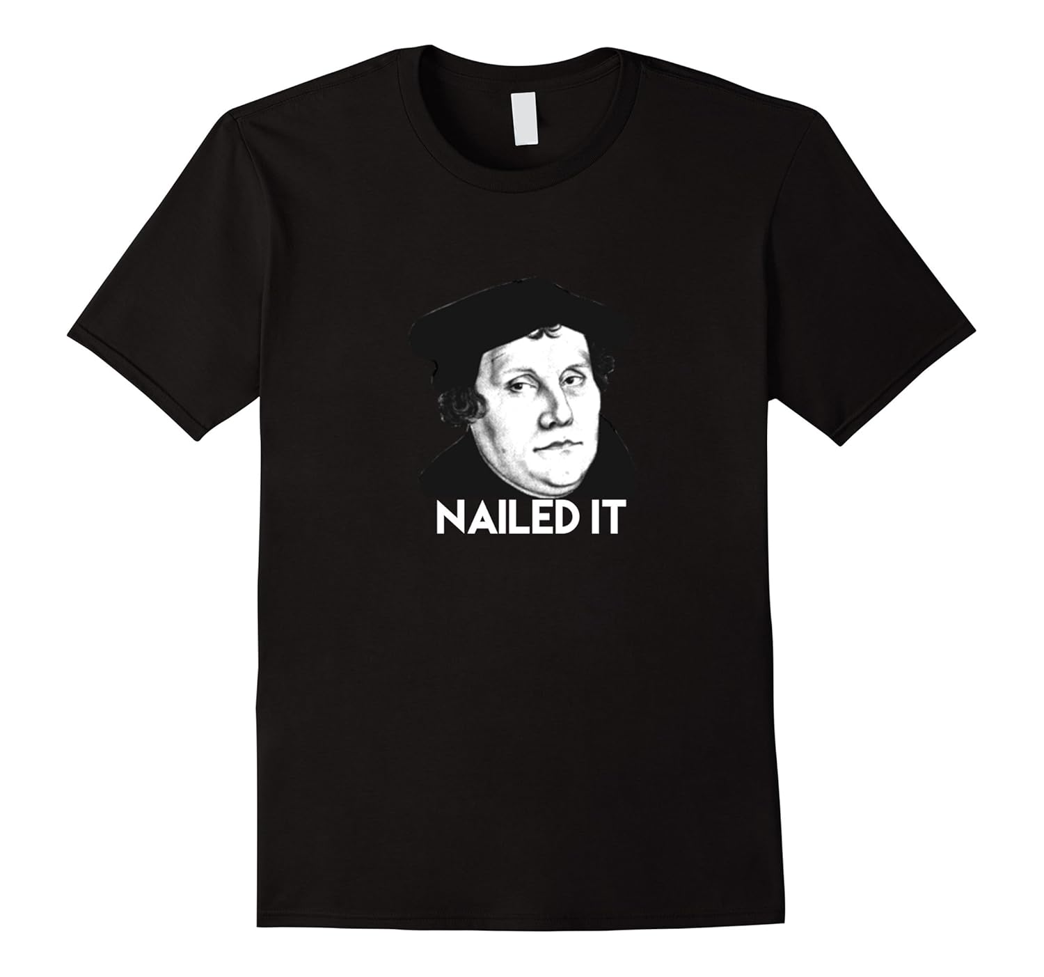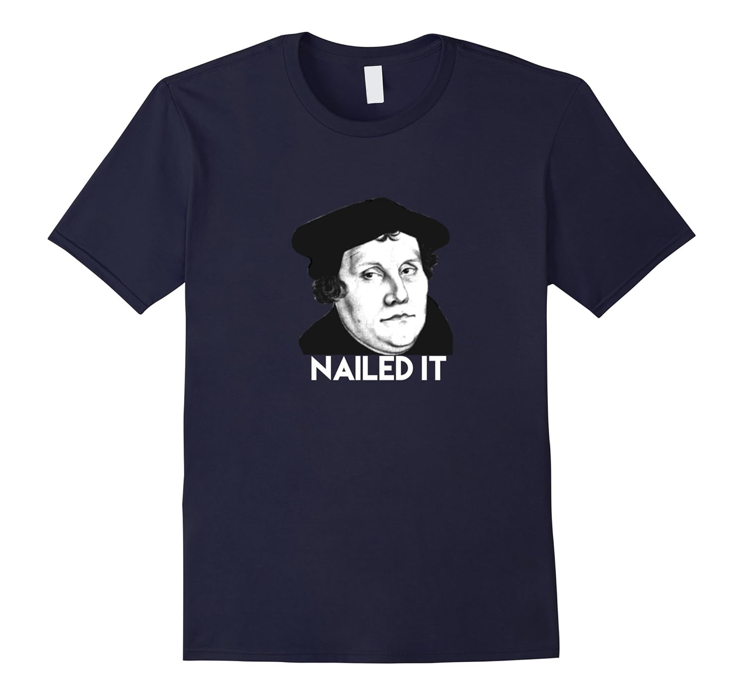Solid colors: 100% Cotton; Heather Grey: 90% Cotton, 10% Polyester; All Other Heathers: 65% Cotton, 35% Polyester, Imported, Machine wash cold with like colors, dry low heat, Nail Protestant Reformation Day with this Martin Luther Nailed It Funny Tee, Lightweight, Classic fit, Double-needle sleeve and bottom hem