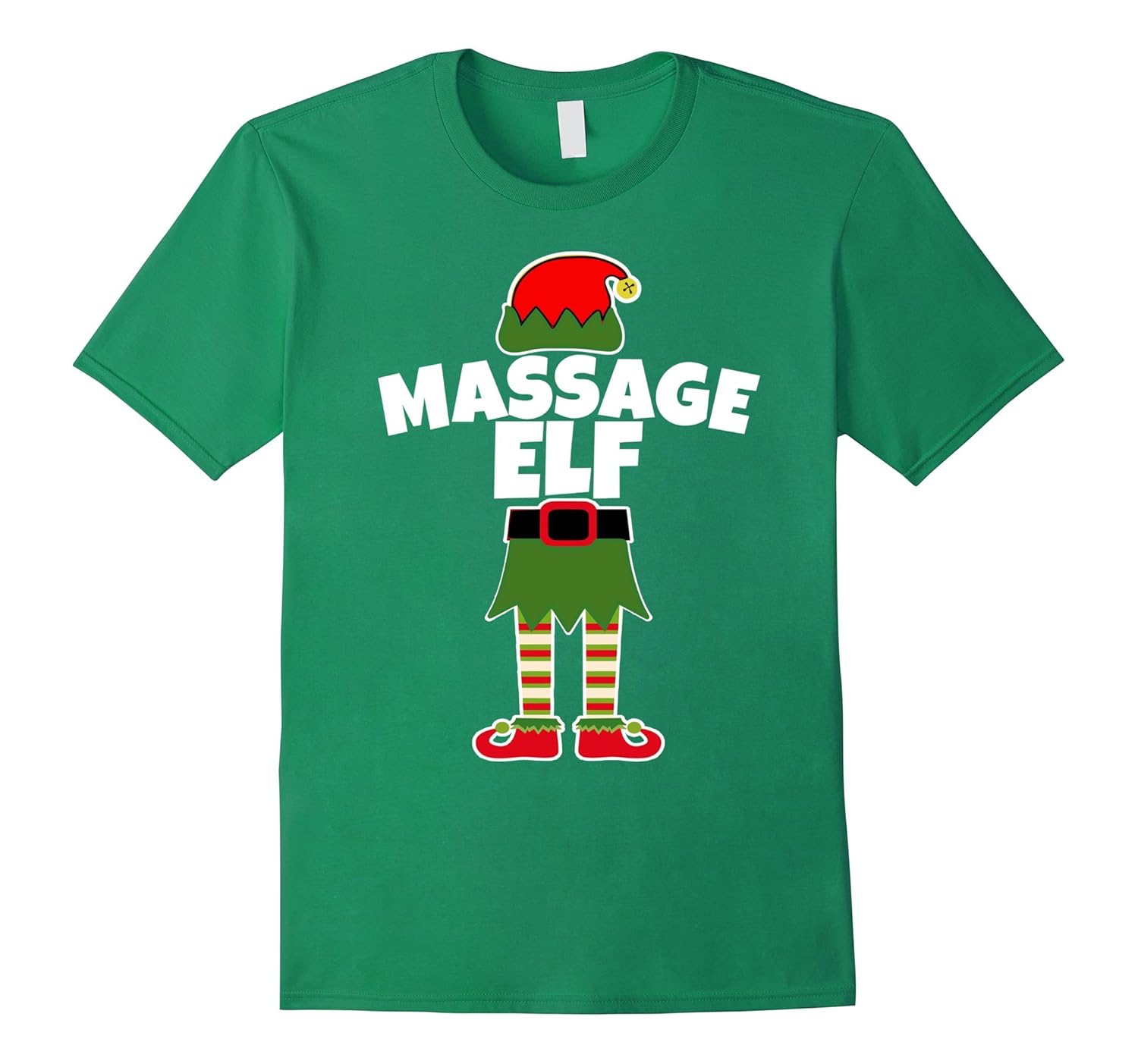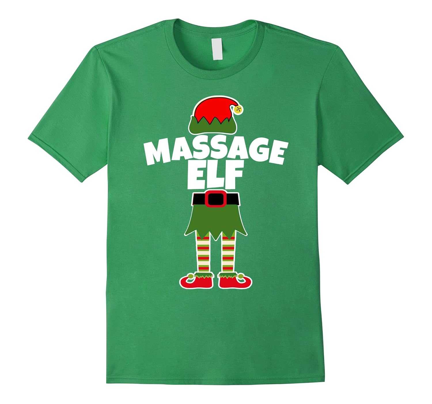 Solid colors: 100% Cotton; Heather Grey: 90% Cotton, 10% Polyester; All Other Heathers: 65% Cotton, 35% Polyester, Imported, Machine wash cold with like colors, dry low heat, Massage Elf Holiday T Shirt. The perfect shirt for your favorite masseuse. Massage therapists will love to sport this fun Christmas design at school or in the salon office for Christmas!, With a little elf hat and striped legs, this Holiday career shirt will be a festive way to celebrate the Holiday Season in your school, work, office or on the town Christmas shopping!, Lightweight, Classic fit, Double-needle sleeve and bottom hem