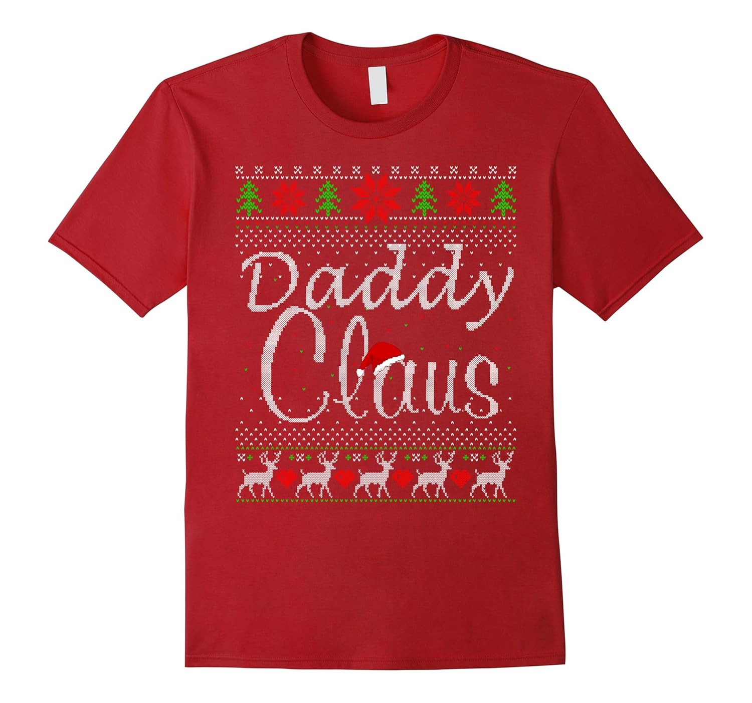 Solid colors: 100% Cotton; Heather Grey: 90% Cotton, 10% Polyester; All Other Heathers: 65% Cotton, 35% Polyester; Imported; Machine wash cold with like colors, dry low heat; Matching Family Christmas Ugly Sweater Daddy Claus Tshirt is a cool shirt for any Daddy to wear on Chrismas. This funny matching family Christmas tshirt is also a great Christmas gift for your Daddy when family gathering.; Funny Matching Family Christmas Ugly Sweater Daddy Claus Tshirt is designed with ugly sweater style that will be a cool gift for any Daddy on Christmas. Wearing this shirt and merry Christmas with your family.; Lightweight, Classic fit, Double-needle sleeve and bottom hem