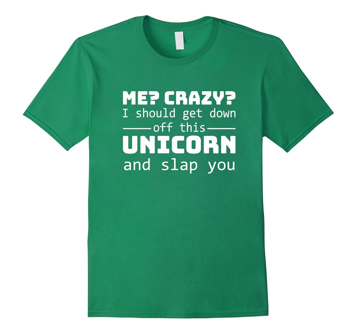 Solid colors: 100% Cotton; Heather Grey: 90% Cotton, 10% Polyester; All Other Heathers: 65% Cotton, 35% Polyester, Imported, Machine wash cold with like colors, dry low heat, Crazy Unicorn Sarcasm Gift for your lover, me crazy I should get down off this unicorn and slap you, crazy unicorn shirt funny, unicorn apparel girls, graphic sarcasm sign shirt, sarcasm shirt girls humor, Lightweight, Classic fit, Double-needle sleeve and bottom hem