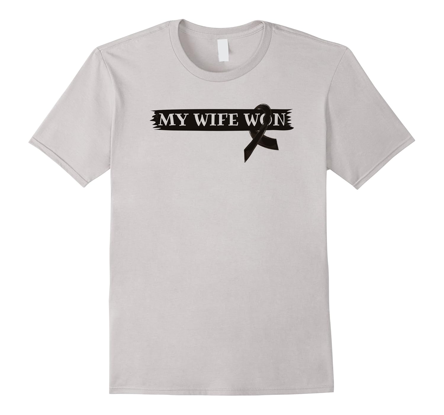 Solid colors: 100% Cotton; Heather Grey: 90% Cotton, 10% Polyester; All Other Heathers: 65% Cotton, 35% Polyester, Imported, Machine wash cold with like colors, dry low heat, Melanoma Cancer Awareness tshirt, Let”s wear black ribbon for Melanoma cancer, My Wife Won t-shirt Melanoma cancer, Melanoma cancer awareness month. Lightweight, Classic fit, Double-needle sleeve and bottom hem