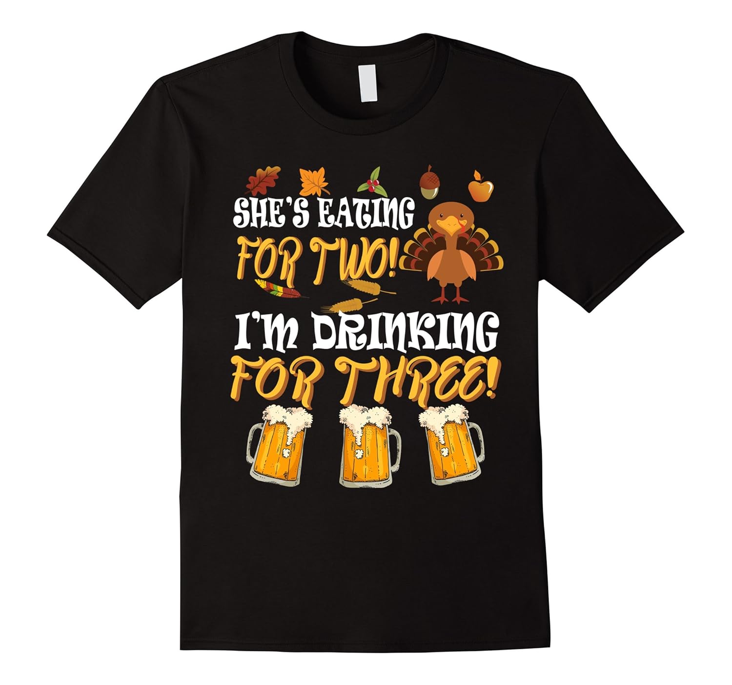Solid colors: 100% Cotton; Heather Grey: 90% Cotton, 10% Polyester; All Other Heathers: 65% Cotton, 35% Polyester, Imported, Machine wash cold with like colors, dry low heat, Men Thanksgiving She”s eating for 2 pregnancy announcement, erfect to wear for letting your family know you”re having a baby! Maternity announcement for this fall and Thanksgiving. Let your friends and family know you”re pregnant!, Lightweight, Classic fit, Double-needle sleeve and bottom hem
