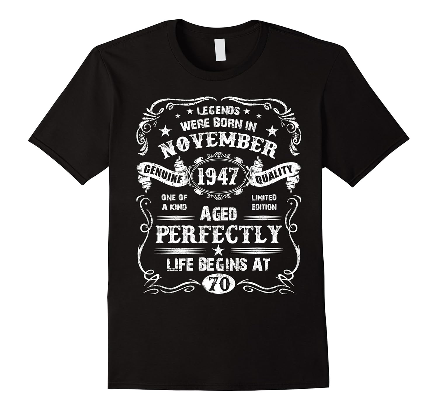 Solid colors: 100% Cotton; Heather Grey: 90% Cotton, 10% Polyester; All Other Heathers: 65% Cotton, 35% Polyester, Imported, Machine wash cold with like colors, dry low heat, T-shirt gift ideas for a man born in November 1947 year and who loves t-shirts. Perfect gift for a senior man turning 70 years old and already becoming a Legend. Best gift for 70th b-day for men. Click brand name for different years. Cool gift for Dad Father Grandparent or Uncle on birthday, Christmas or Father Day with really great saying Legends Were Born In November 1947 – Life Begins At 70 t-shirt for men who celebrate bdays in November. Lightweight, Classic fit, Double-needle sleeve and bottom hem