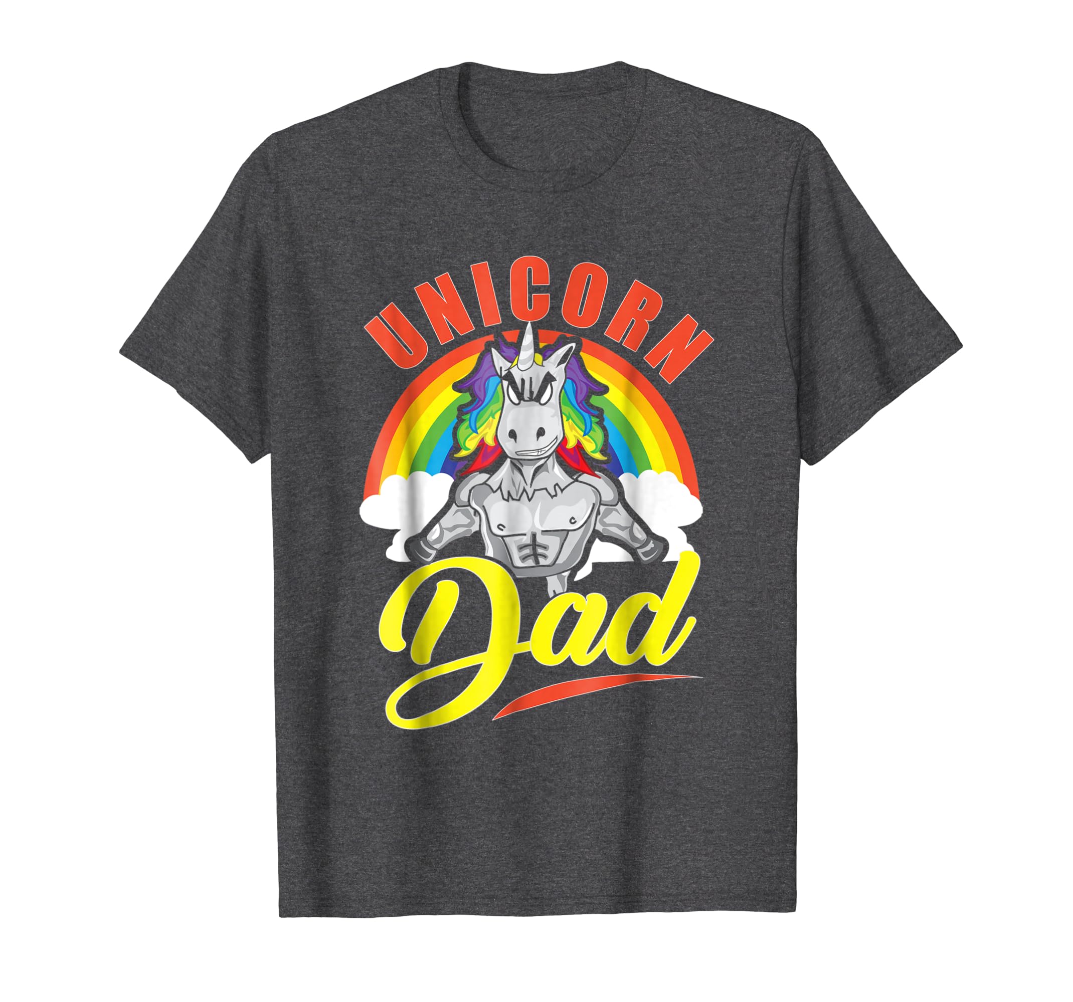 Solid colors: 100% Cotton; Heather Grey: 90% Cotton, 10% Polyester; All Other Heathers: 50% Cotton, 50% Polyester; Imported; Machine wash cold with like colors, dry low heat; Awesome Unicorn Dad Funny T-Shirt: Nothing says how much you love your kid like wearing this and showing off your unicorn pride! Show them you understand their love of unicorns!; Great Gift Choice for Unicorn Dads: If youre looking for a perfect gift to get your dad or grandpa this holiday season, nothing says I love you like this awesome Unicorn tee!; Lightweight, Classic fit, Double-needle sleeve and bottom hem