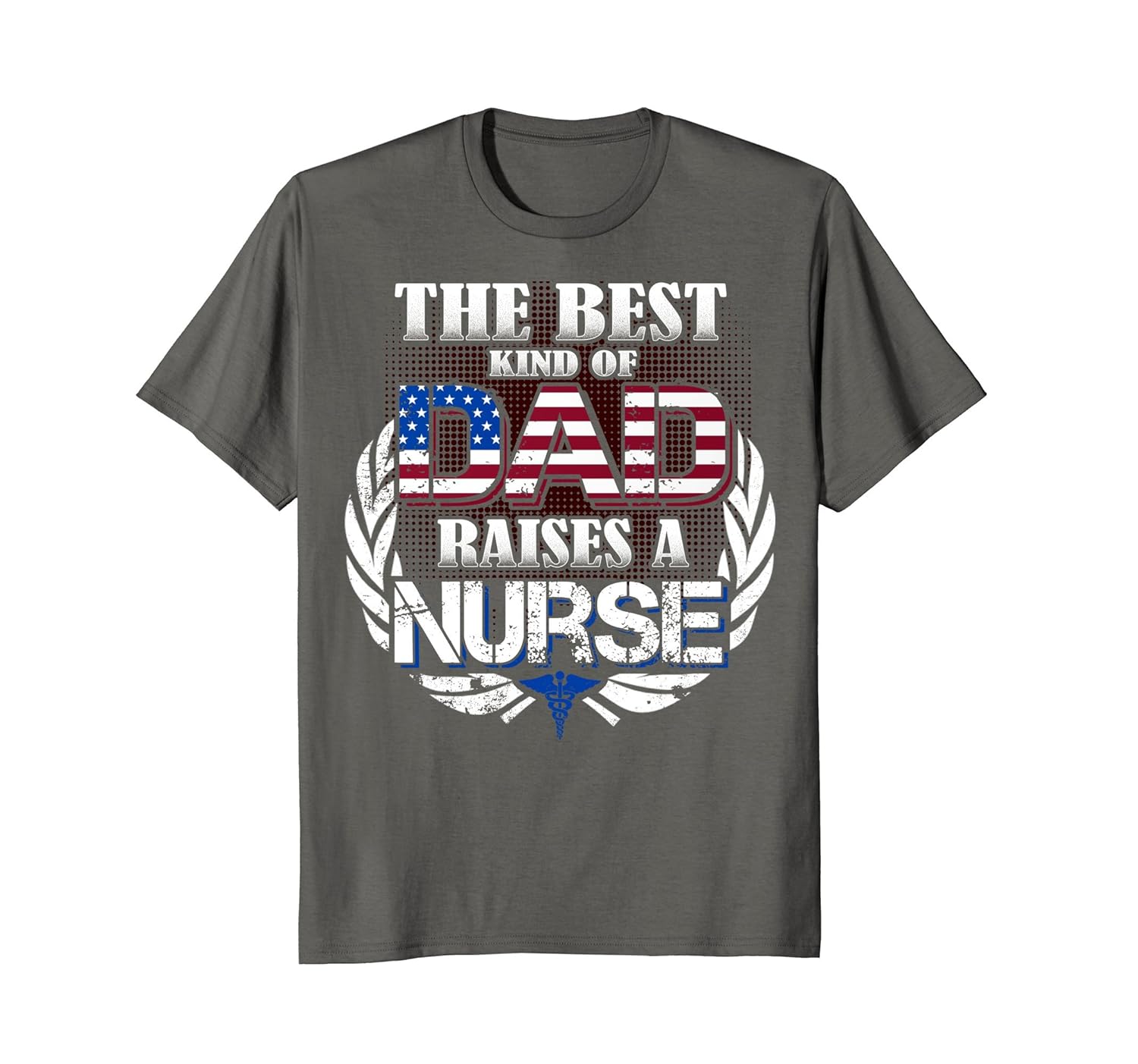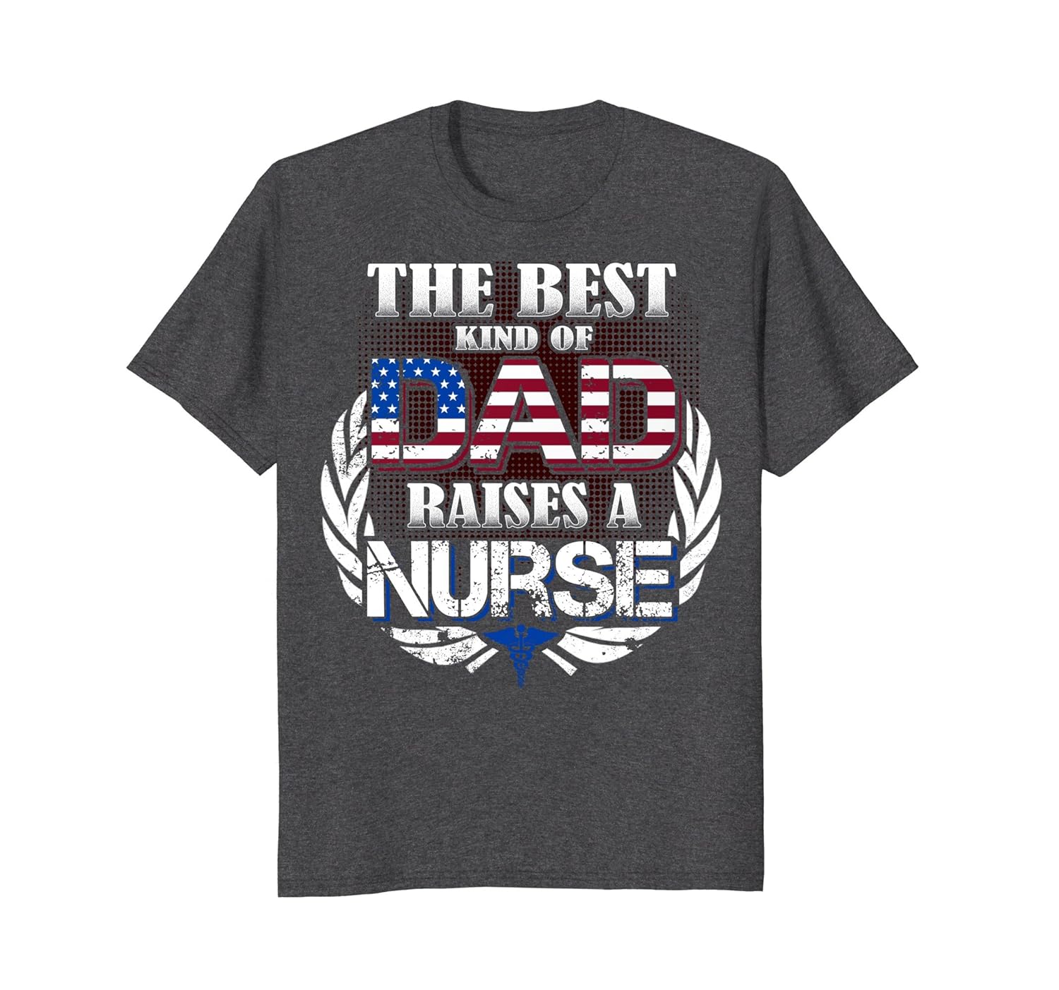 Solid colors: 100% Cotton; Heather Grey: 90% Cotton, 10% Polyester; All Other Heathers: 50% Cotton, 50% Polyester; Imported; Machine wash cold with like colors, dry low heat; Best Dad Raises A Nurse, Fathers Day shirt is the answer if youre looking for nurse t shirt, nurse costume, nurse gifts for men, t shirts for nurses, male nurse, nurses gifts for women; Big Dad on American flag theme makes this nurses dad shirt a unique custom apparel to show the love for greatest fathers of United States, of America on International Nurses Day, Fathers Day and Parents Day; Lightweight, Classic fit, Double-needle sleeve and bottom hem