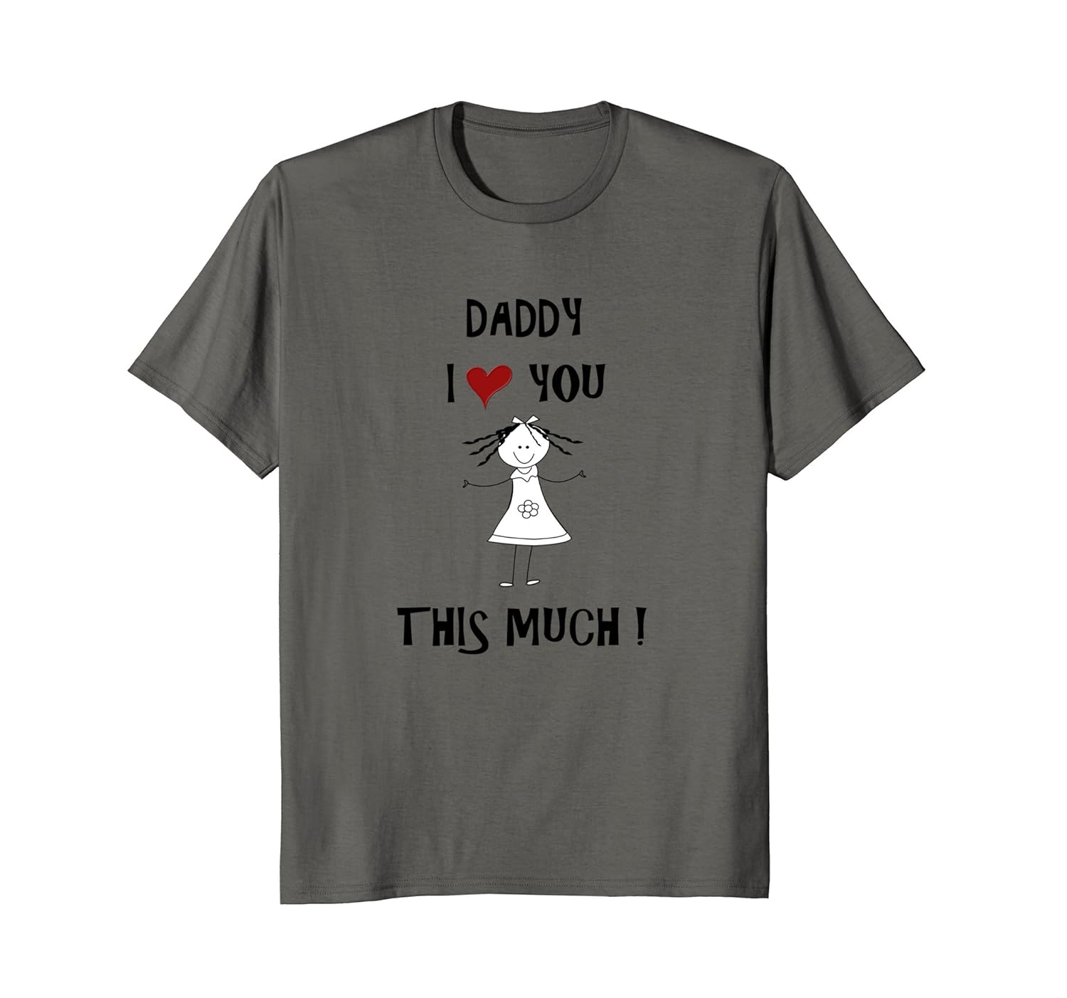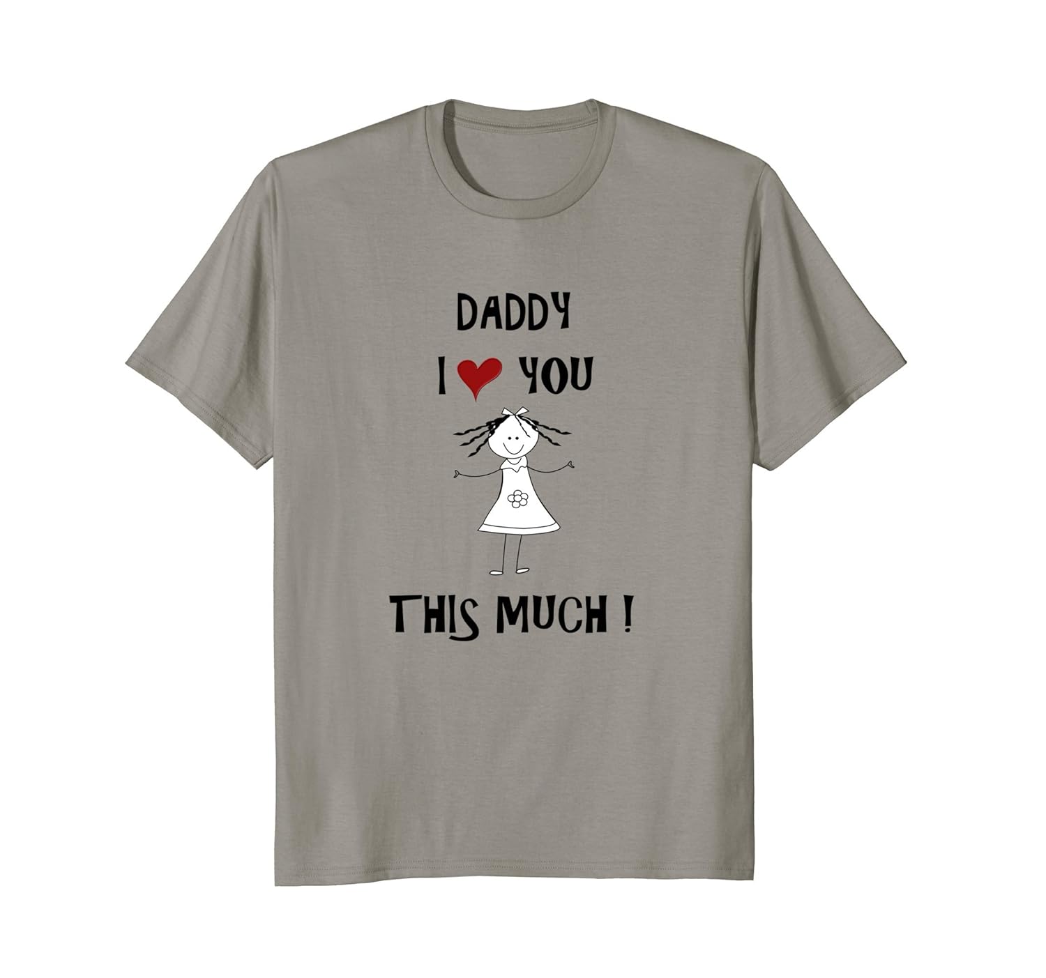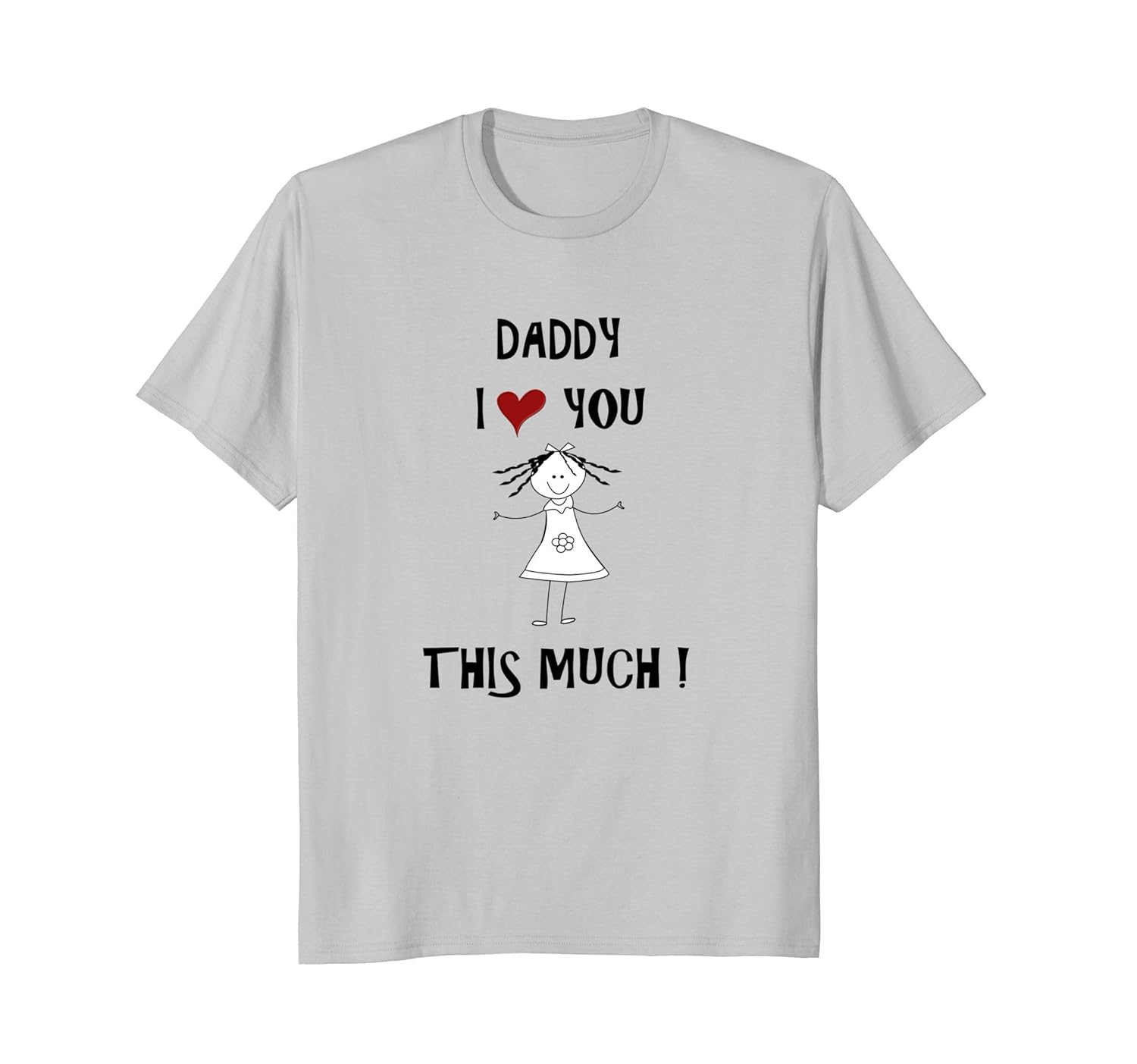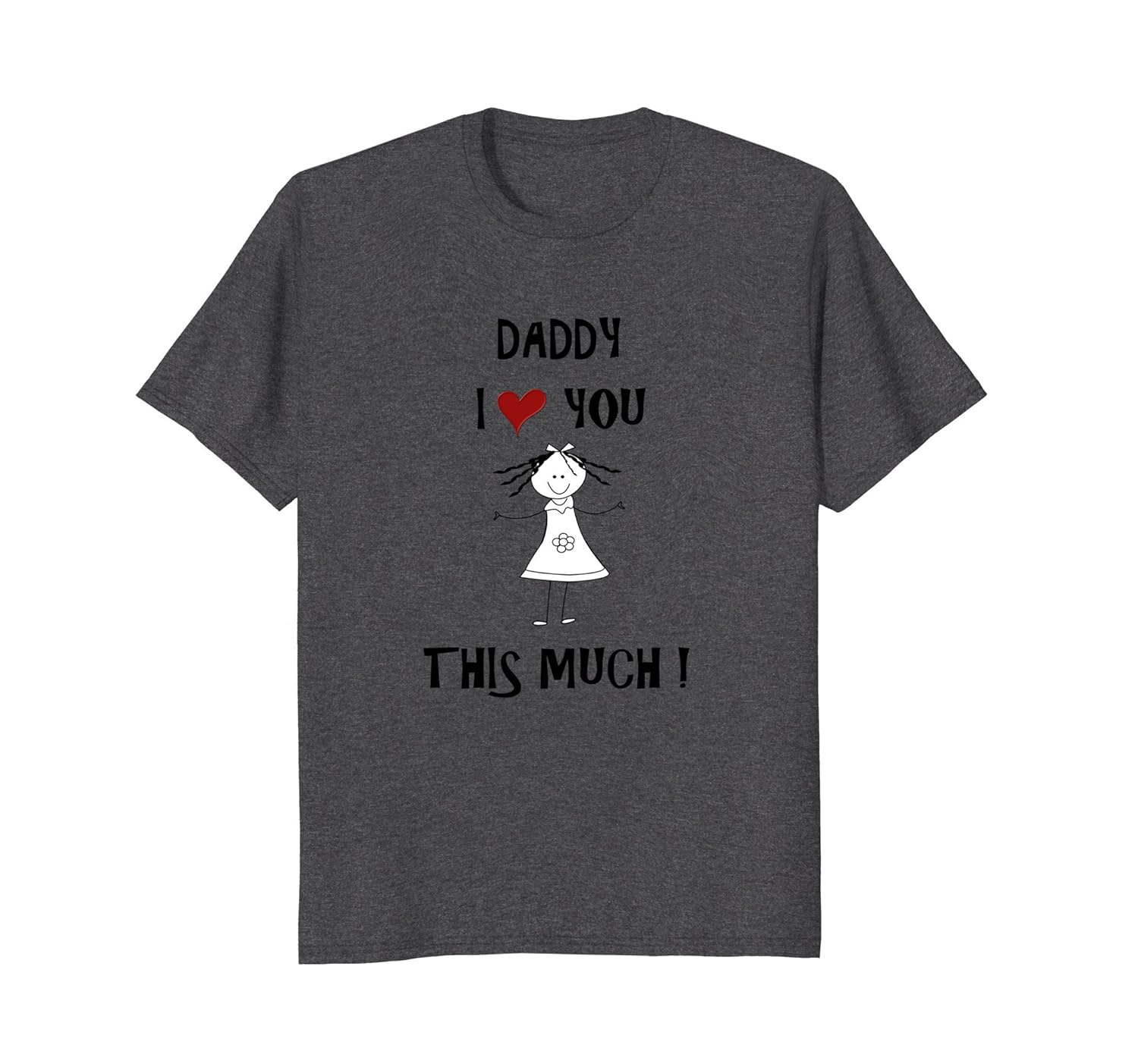 Solid colors: 100% Cotton; Heather Grey: 90% Cotton, 10% Polyester; All Other Heathers: 50% Cotton, 50% Polyester; Imported; Machine wash cold with like colors, dry low heat; Show love for a father with this fun shirt. It is a great show off tee shirt for at home or out and about. The funny quote will bring on a smile. Give this to your Dad to tell her you love her all year long.; T-shirt has the saying Daddy I Love You This Much. A little girl holding her arms wide apart showing how much she loves her papa.; Lightweight, Classic fit, Double-needle sleeve and bottom hem