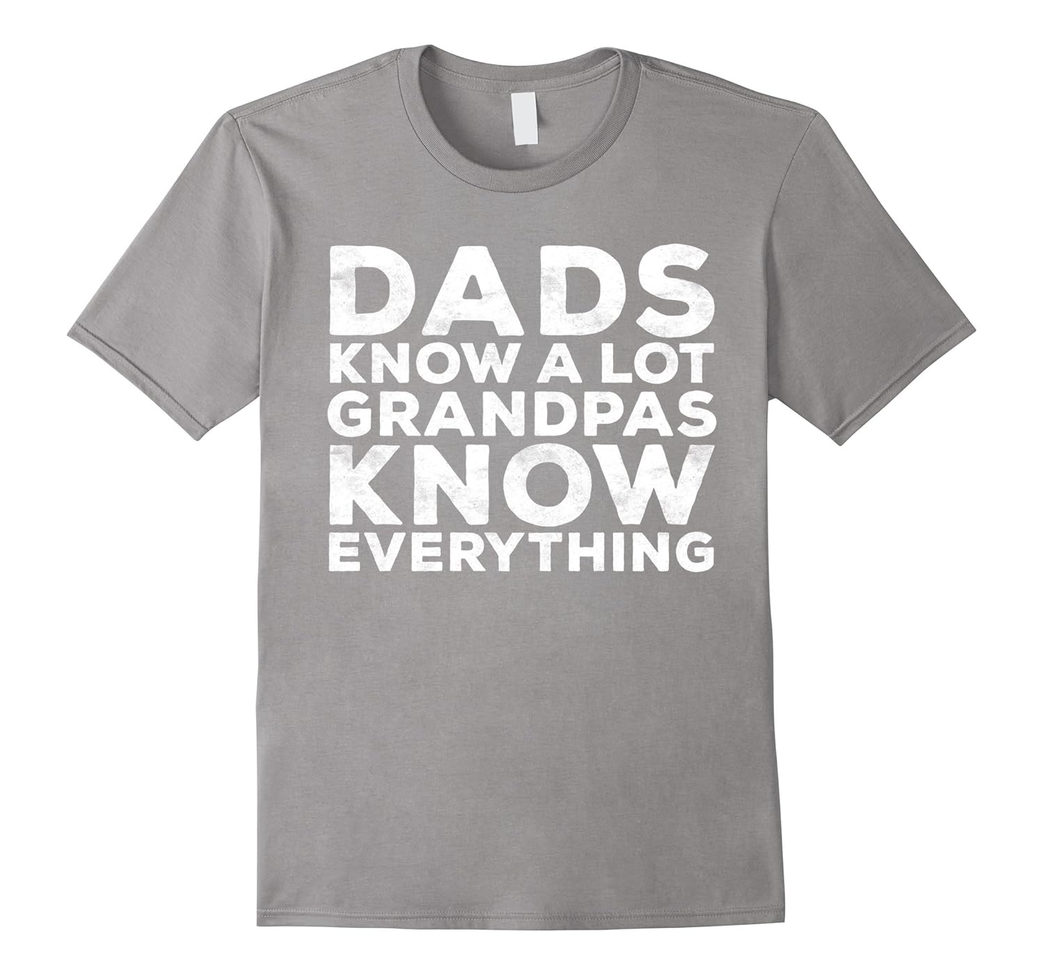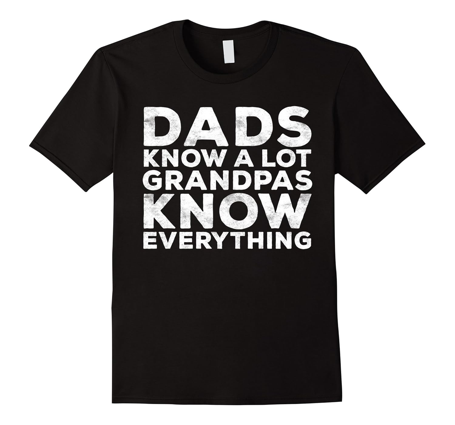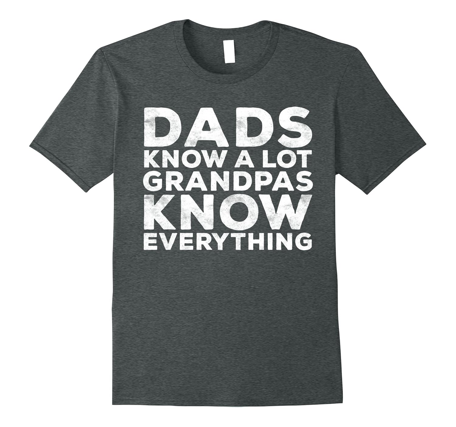 Solid colors: 100% Cotton; Heather Grey: 90% Cotton, 10% Polyester; All Other Heathers: 50% Cotton, 50% Polyester; Imported; Machine wash cold with like colors, dry low heat; Perfect Gift Idea for Father / Grandfather – Dads Know A Lot Grandpas Know Everything Tshirt. Awesome gift from kids, daughters, sons and mom for your daddy, dad, papa, father, husband, buddy, friend, parents, grandpa, granddad or him on Fathers day!; Funny Tee with print Dads Know A Lot Grandpas Know Everything. Complete your collection of Fathers Day accessories for him / her (jewelry, necklace, clothes, locket, hat, pajamas, bracelet, charm, collar, keychain, beer coffee mug) with this T-Shirt.; Lightweight, Classic fit, Double-needle sleeve and bottom hem