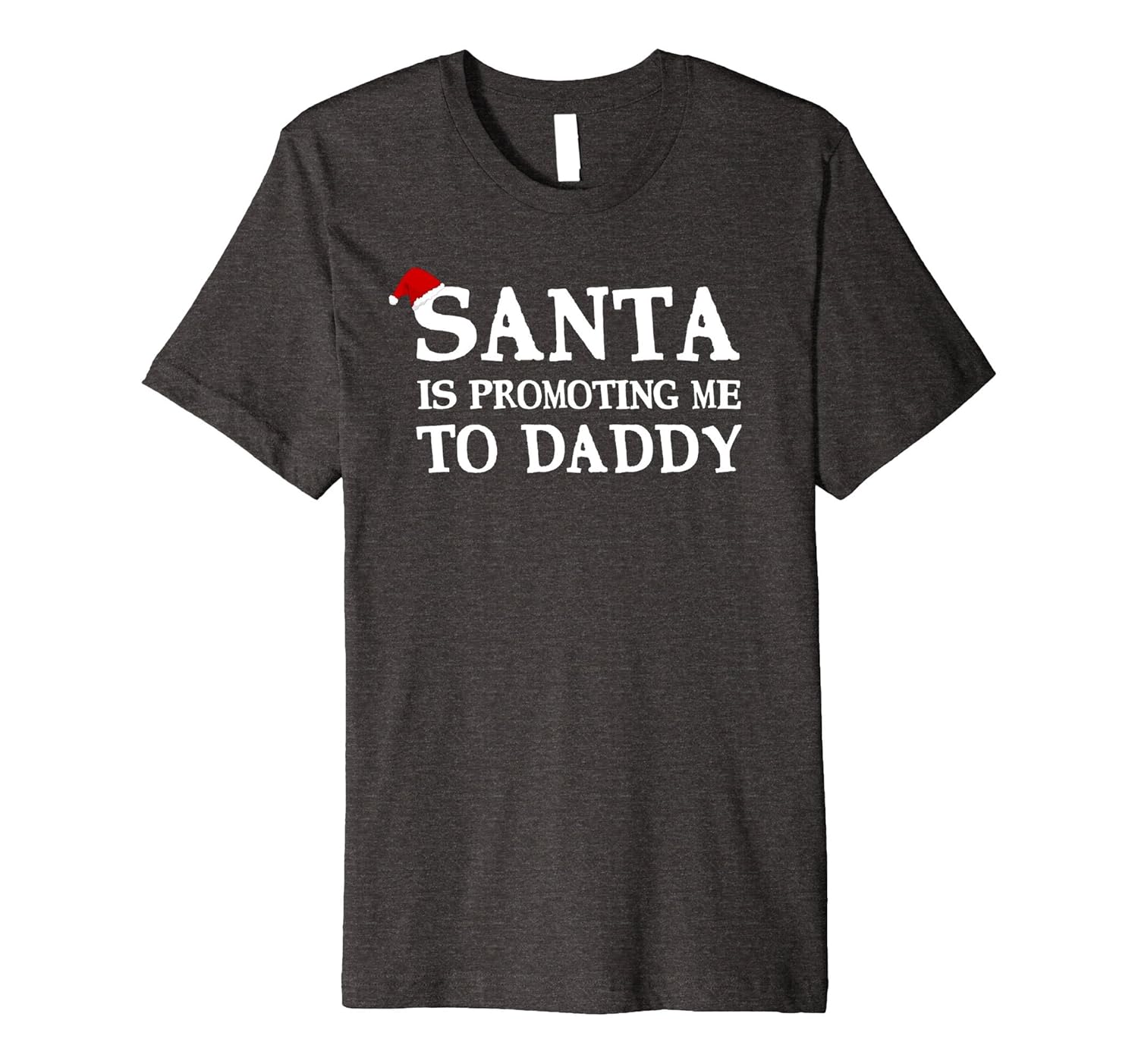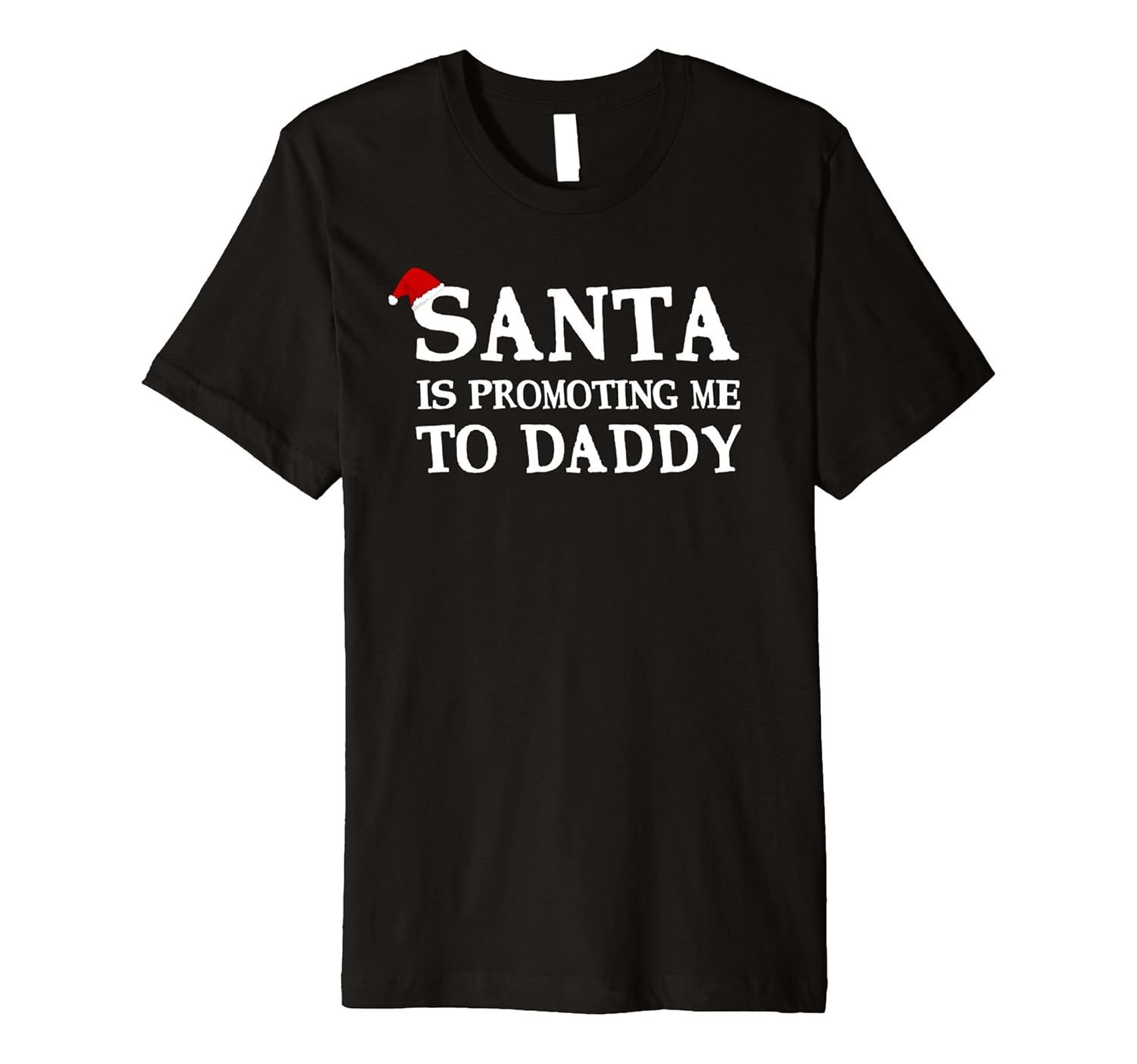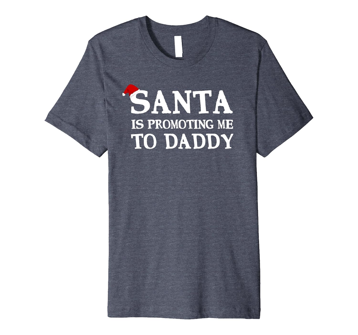 Solid colors: 100% Cotton; Heather Grey: 90% Cotton, 10% Polyester; All Other Heathers: 58% Cotton, 42% Polyester; Imported; Machine wash cold with like colors, dry low heat; Funny Christmas Pregnancy Announcement Shirt Santa Daddy Dad.; Fit: Slim (consider ordering a larger size for a looser fit); Great winter X-MAS pregnancy reveal shirt for the new daddy in your family be it husband, boyfriend, dad, brother, grandson, son, uncle, friend or co-worker. Great to wear to a Christmas party, wedding shower, baby shower or holiday celebration.; This premium t-shirt is made of lightweight fine jersey fabric