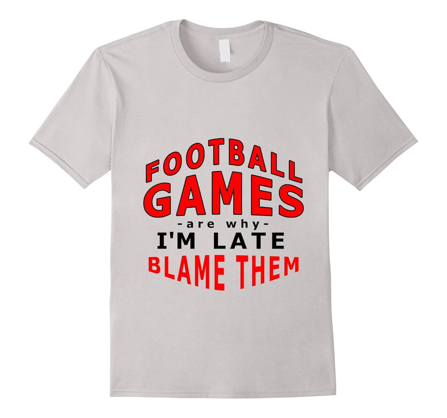 Solid colors: 100% Cotton; Heather Grey: 90% Cotton, 10% Polyester; All Other Heathers: 65% Cotton, 35% Polyester, Imported, Machine wash cold with like colors, dry low heat, Does someone you know love watching football games all the time and are late for dinner or other things because of that. Then this funny football shirt lets them show that. If football games are not a reason for being late, then what is. Whether it is college football or professional or football playoffs, sometimes a football fan just can”t get away from the TV. So don”t blame someone watching football but blame the football games!, Lightweight, Classic fit, Double-needle sleeve and bottom hem