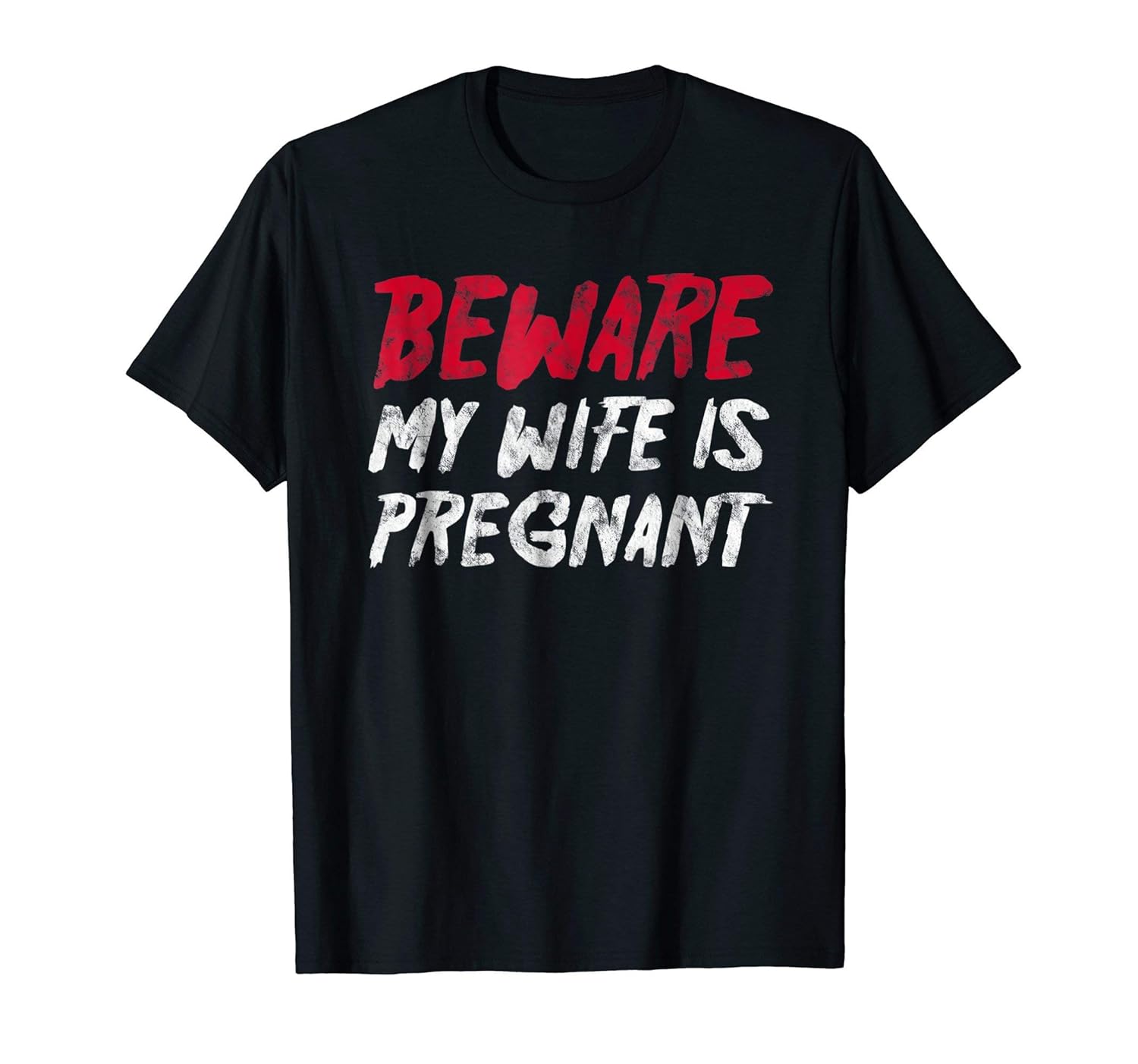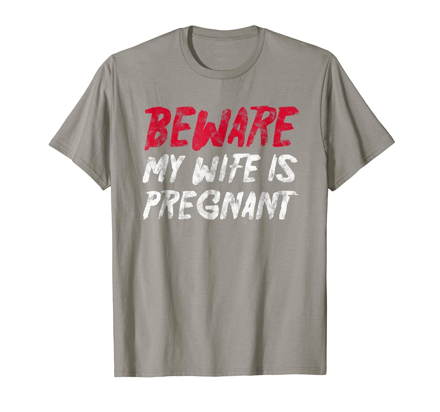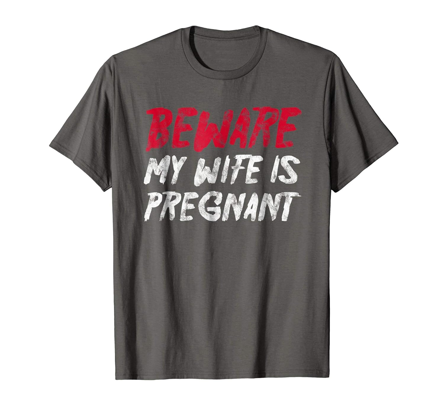 Solid colors: 100% Cotton; Heather Grey: 90% Cotton, 10% Polyester; All Other Heathers: 50% Cotton, 50% Polyester; Imported; Machine wash cold with like colors, dry low heat; Let everyone know your wife is pregnant with this funny pregnancy announcement design. A great gift for a dad to be, husband, father, or someone with a wife that is expecting a baby or twins.; Wear this to a Halloween party, gender reveal party, or any time of the year. This design features bold, distressed text and is sure to get laughs.; Lightweight, Classic fit, Double-needle sleeve and bottom hem