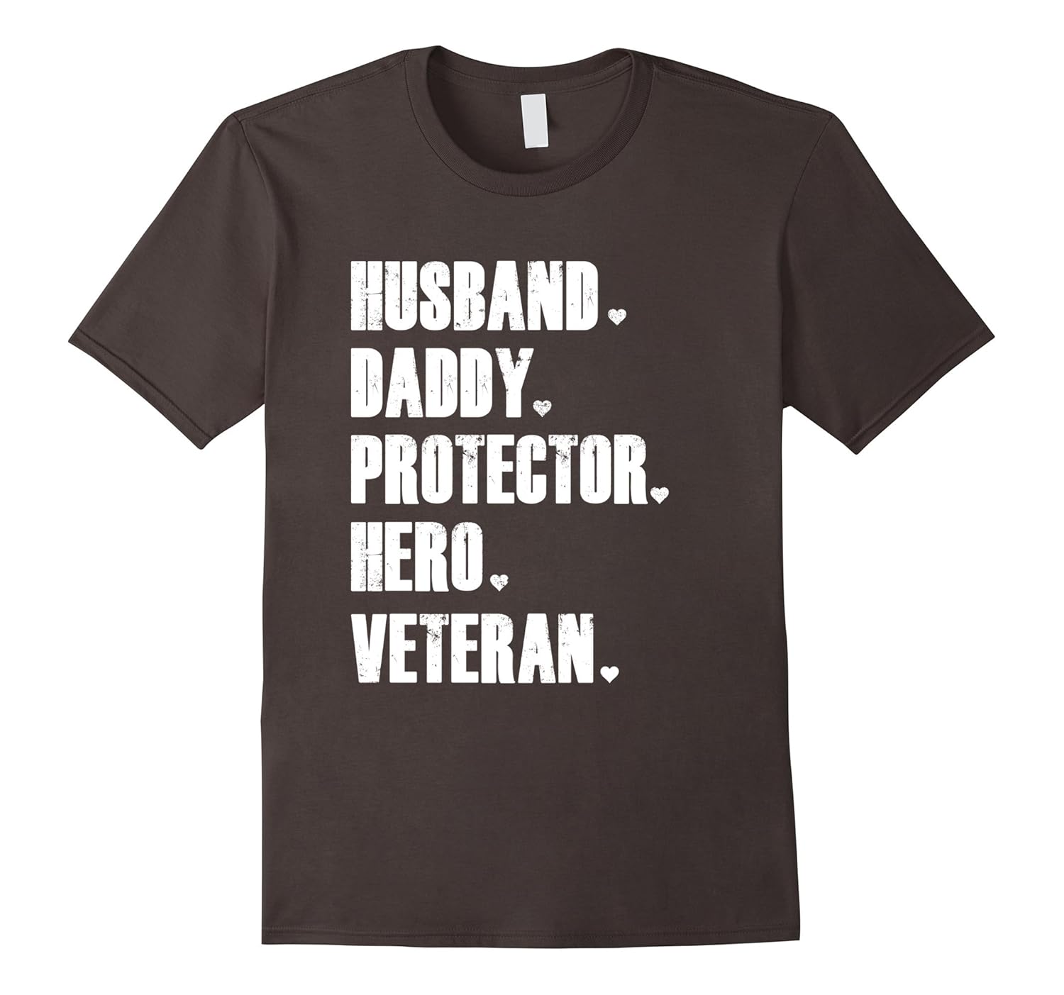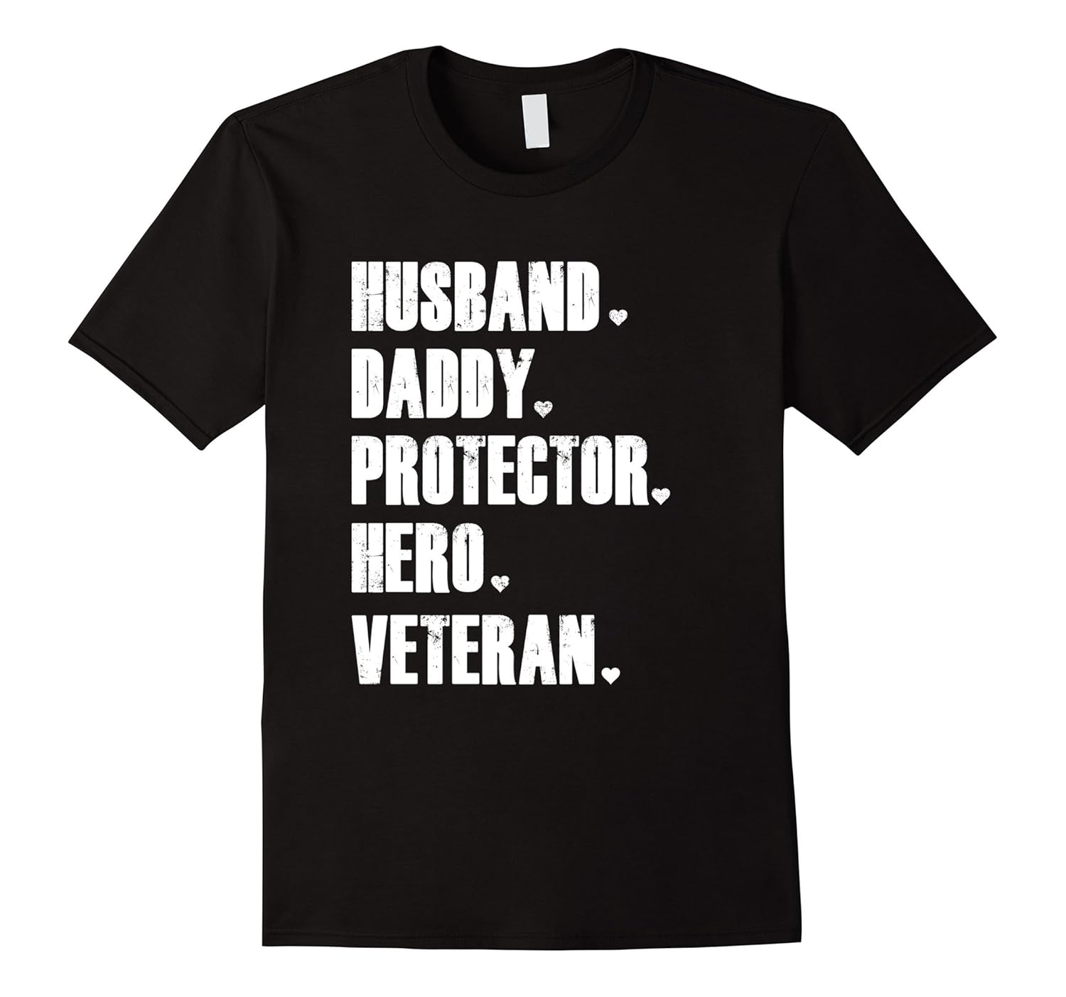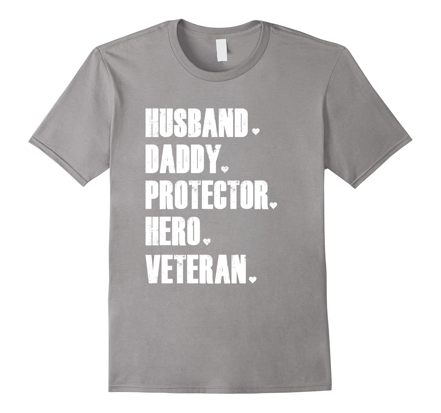 Solid colors: 100% Cotton; Heather Grey: 90% Cotton, 10% Polyester; All Other Heathers: 65% Cotton, 35% Polyester, Imported, Machine wash cold with like colors, dry low heat, Husband Daddy Protector Hero Veteran shirt, husband Veteran shirt, dad veteran shirt, Lightweight, Classic fit, Double-needle sleeve and bottom hem