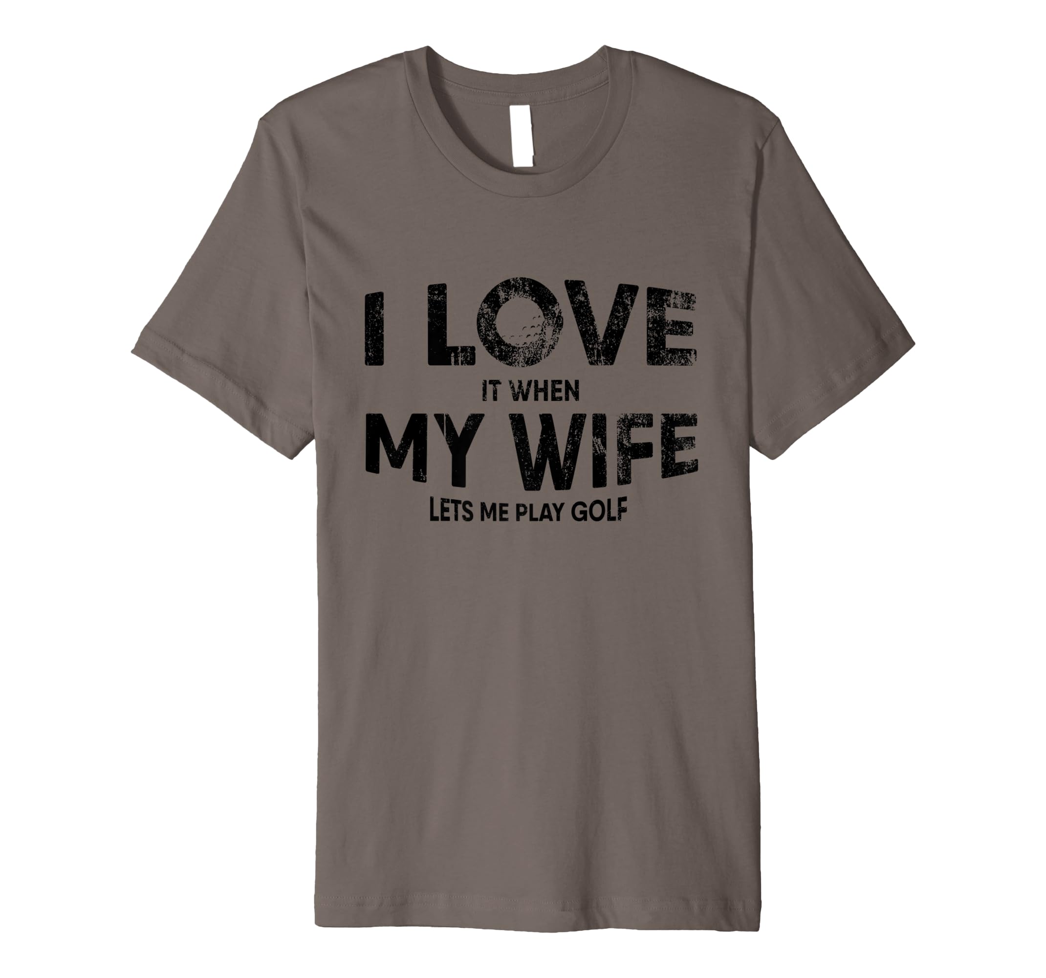 Solid colors: 100% Cotton; Heather Grey: 90% Cotton, 10% Polyester; All Other Heathers: 58% Cotton, 42% Polyester; Imported; Machine wash cold with like colors, dry low heat; An exclusive funny Quote T-Shirt. Great for golf lovers, golfer and golf stickers fans!. A great gift for Fathers Day, Birthday and Christmas. An ideal shirt for Dads, Daddy and your Husband. Great for anyone who is passionate about golf and golf carts; I Love It When My Wife Lets Me Play Golf Is Designed in different sizes for Women, Men and Kids. If You like Golf Ball, Mini Golf and Golf Quotes. This Vintage Golf Club tee is the perfect gift for hole in one hitters, golf tournament fans and golf players; This premium t-shirt is made of lightweight fine jersey fabric; Fit: Slim (consider ordering a larger size for a looser fit)