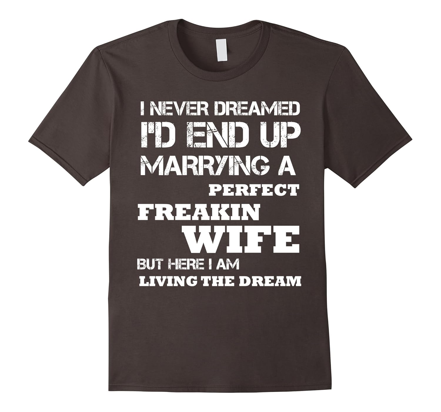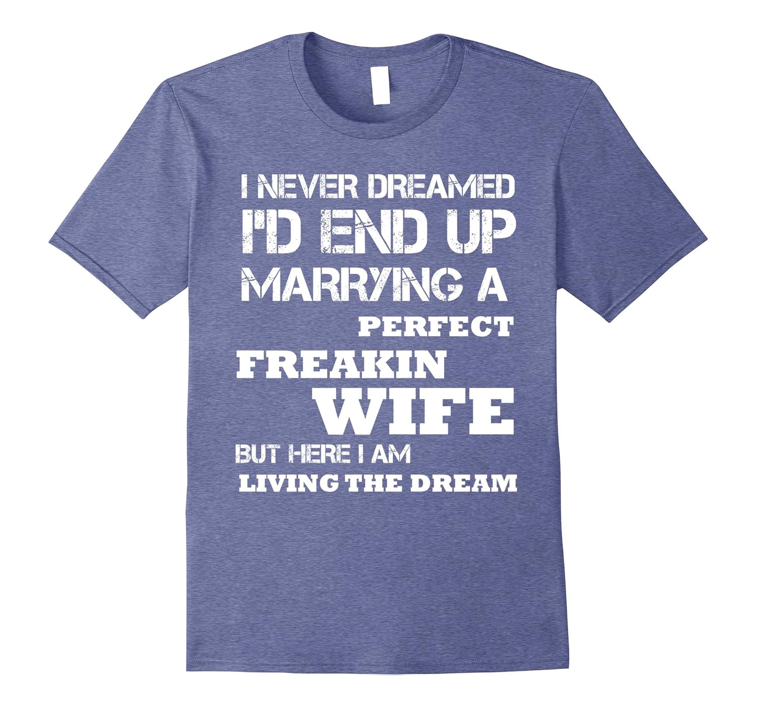Solid colors: 100% Cotton; Heather Grey: 90% Cotton, 10% Polyester; All Other Heathers: 65% Cotton, 35% Polyester, Imported, Machine wash cold with like colors, dry low heat, Perfect Gift Idea for Best Husband Ever – I Never Dreamed I”d End Up Marrying A Perfect Freakin” Wife Tshirt. Awesome gift from kids, daughters, sons and mom for your daddy, dad, papa, poppy, father, husband, friend on wedding anniversary. Funny Novelty Tee with graphic. Complete your collection of love story accessories for him / her (apron, jewelry, necklace, clothes, locket, hat, pajamas, bracelet, charm, collar, keychain, coffee beer mug) with this T-Shirt. Lightweight, Classic fit, Double-needle sleeve and bottom hem