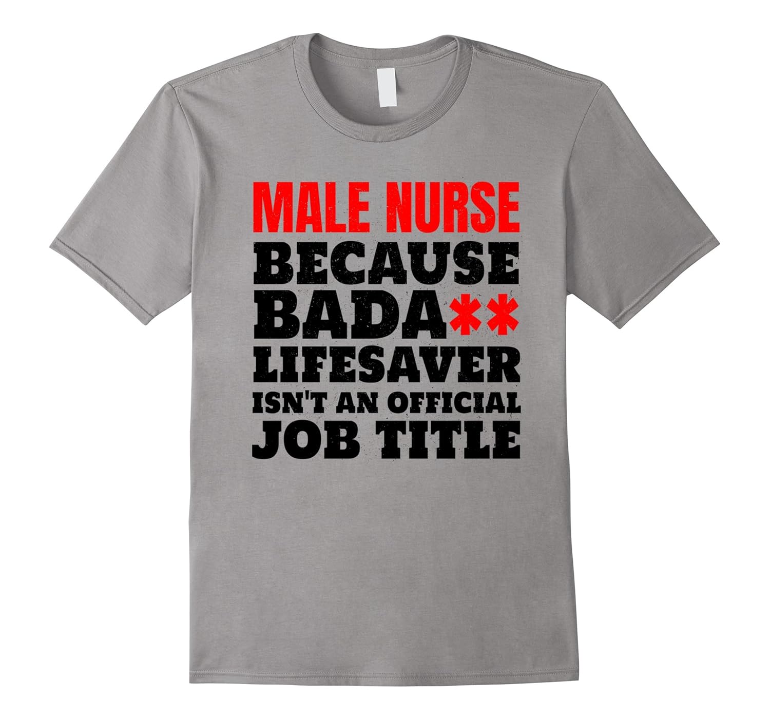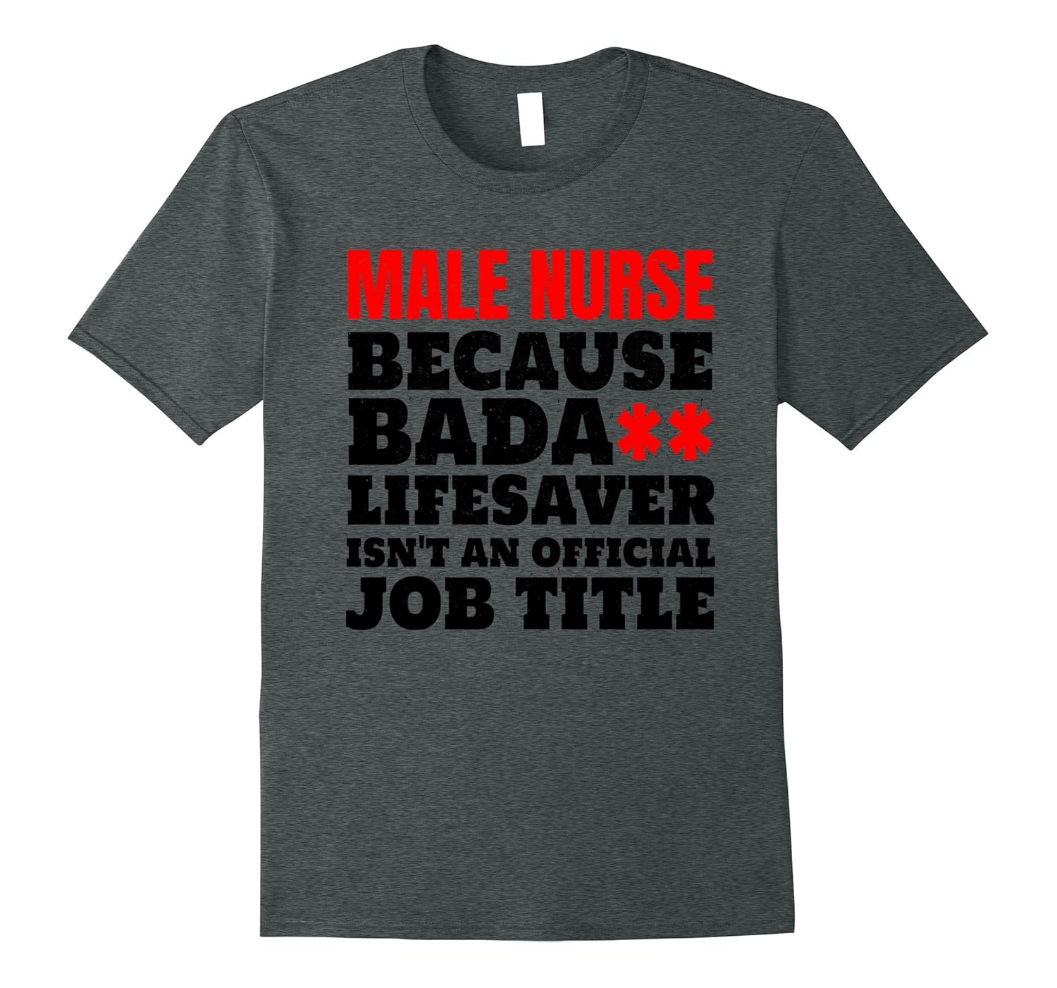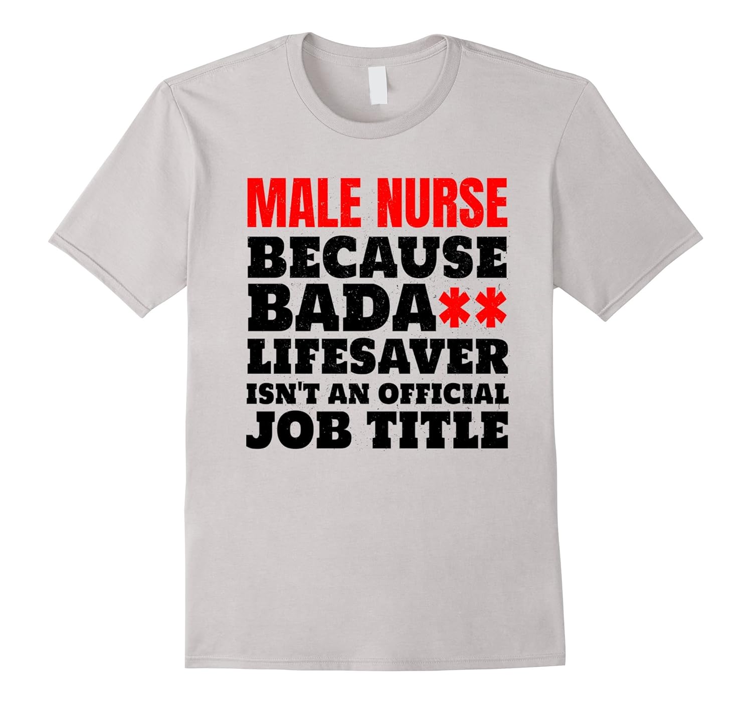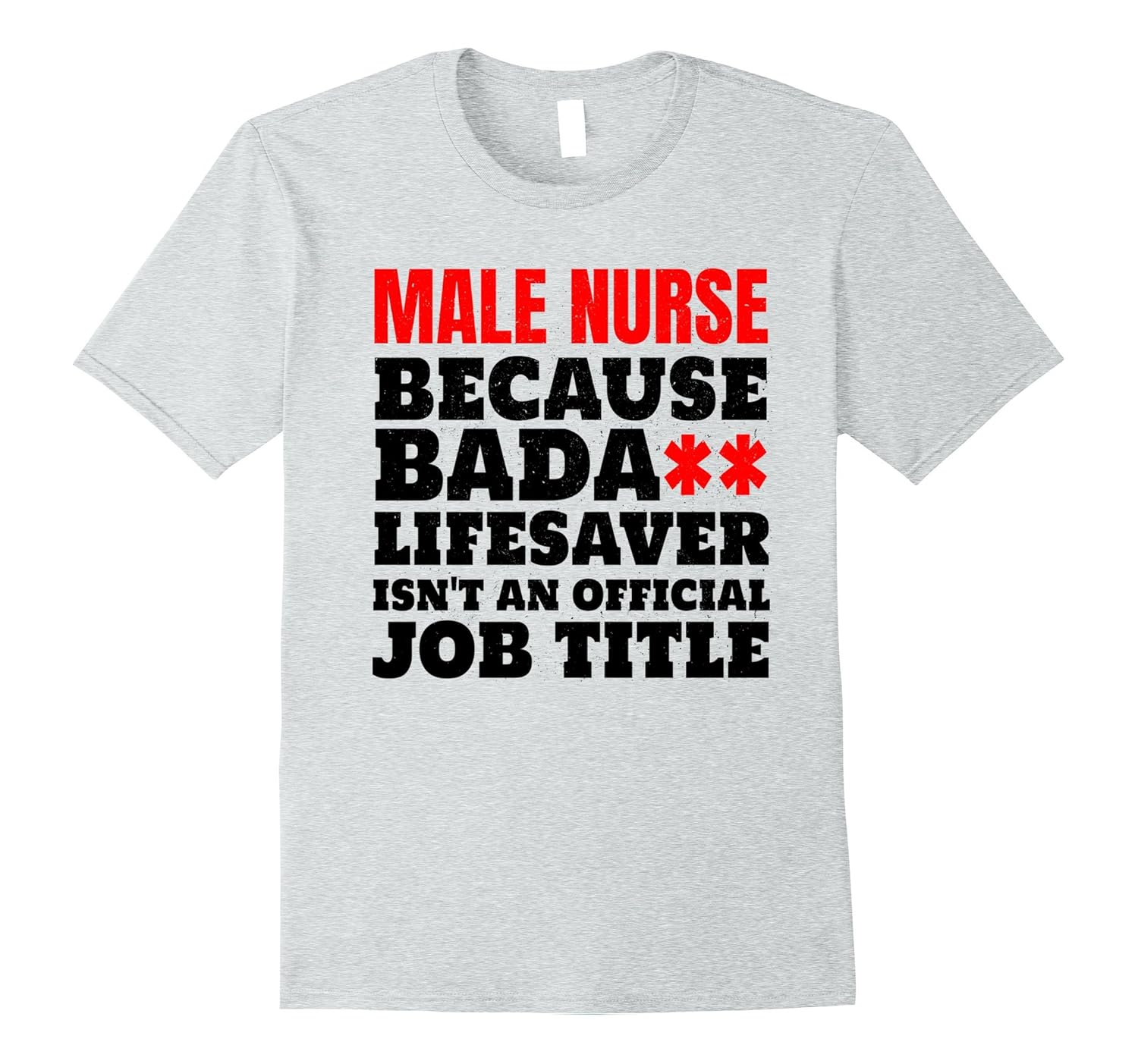 Solid colors: 100% Cotton; Heather Grey: 90% Cotton, 10% Polyester; All Other Heathers: 50% Cotton, 50% Polyester; Imported; Machine wash cold with like colors, dry low heat; Great gift for a male nurse under 20. Caption reads Male Nurse Because Bada** Lifesaver is Not an Official Job Title; We love our male nurses, strong and caring, you cant beat that! This makes a great gift for Dad, Brother, Uncle or Friend.; Lightweight, Classic fit, Double-needle sleeve and bottom hem