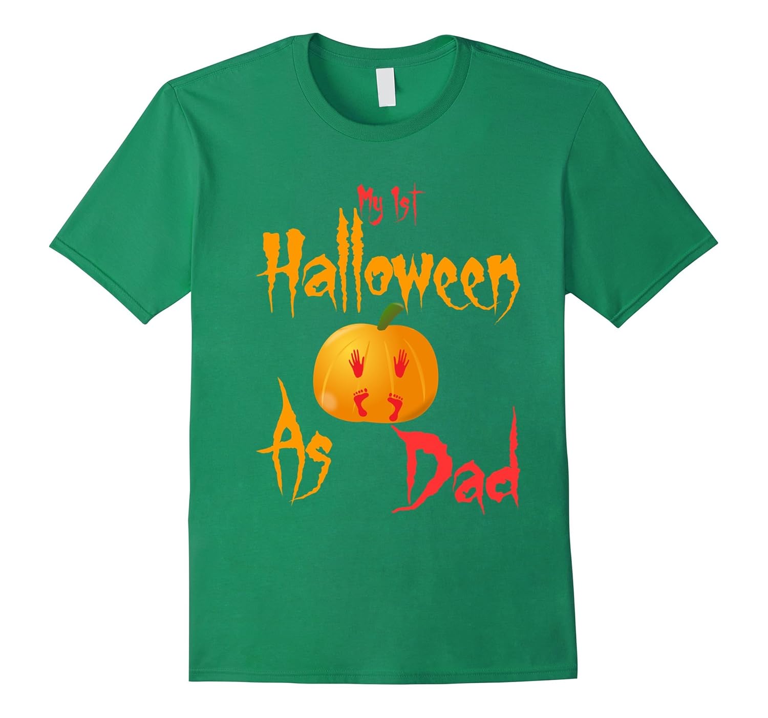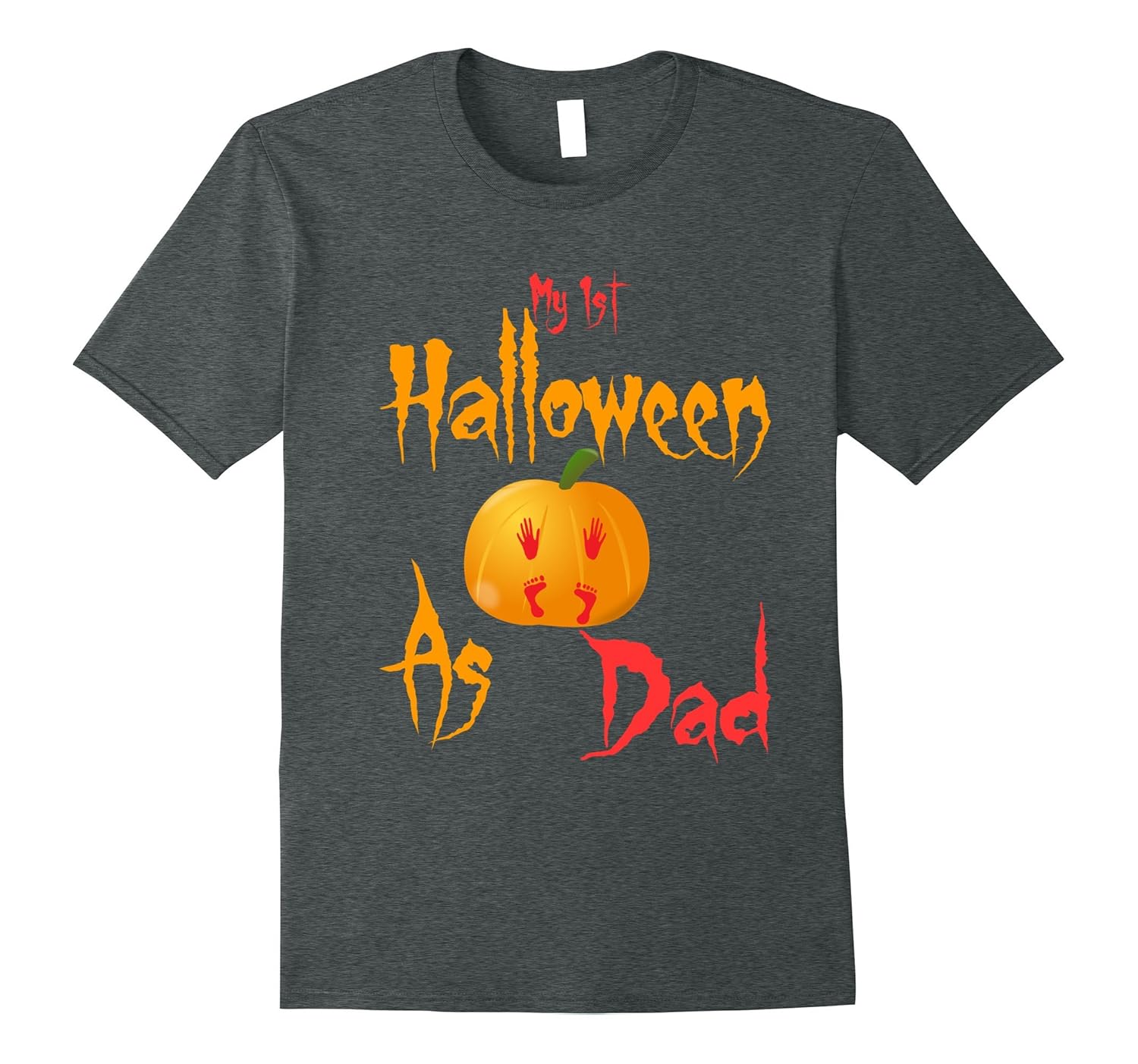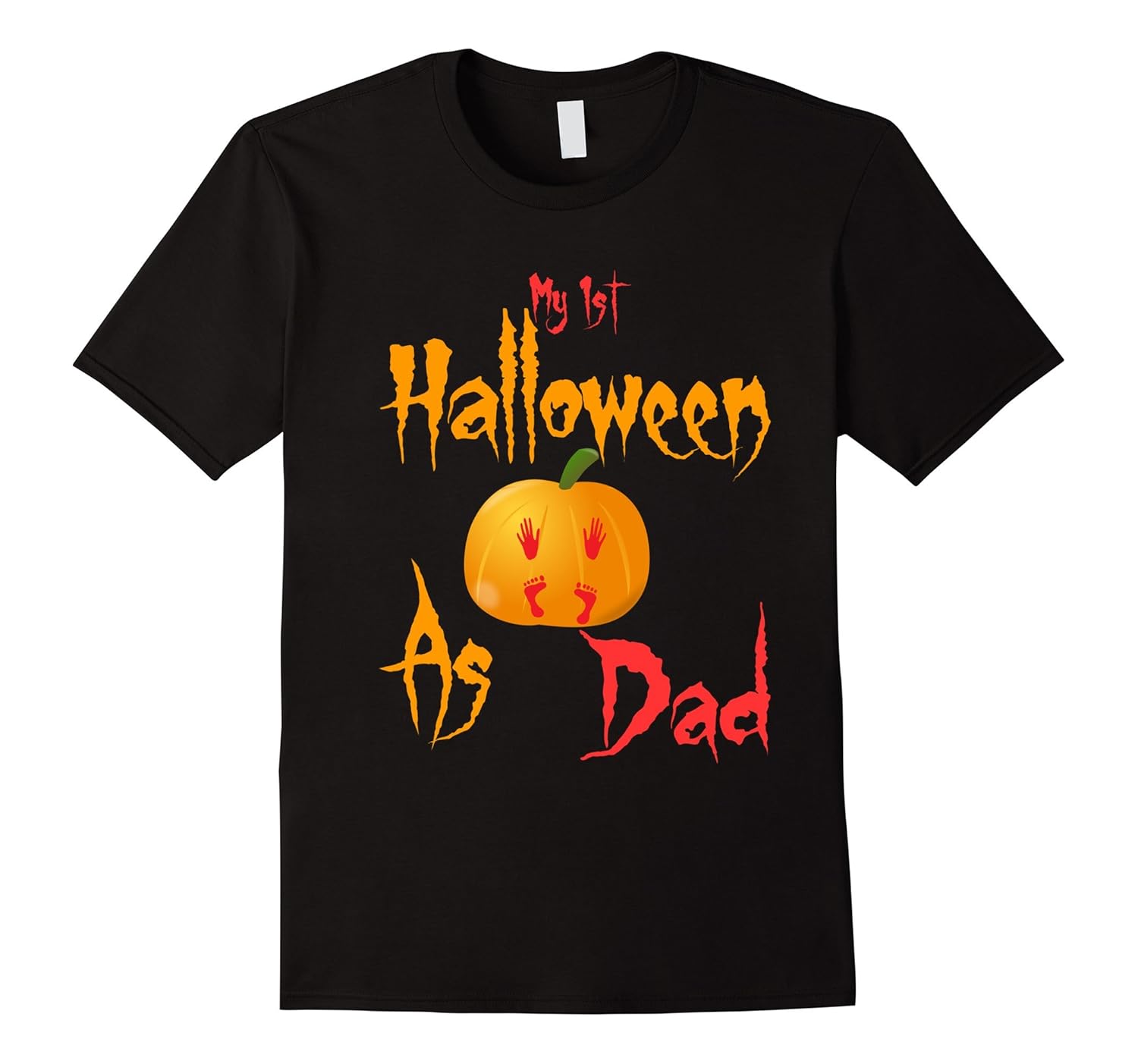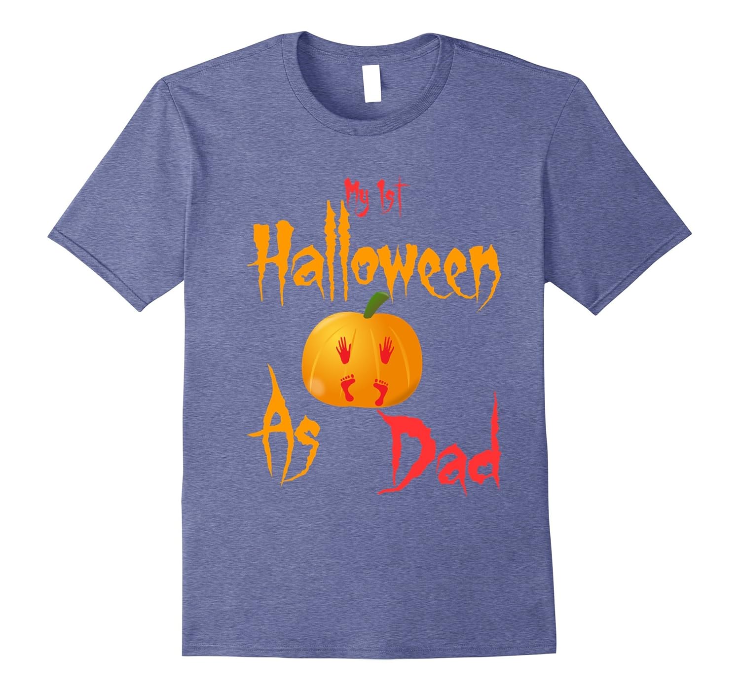 Solid colors: 100% Cotton; Heather Grey: 90% Cotton, 10% Polyester; All Other Heathers: 65% Cotton, 35% Polyester, Imported, Machine wash cold with like colors, dry low heat, If your partner is expecting in this Halloween or a new daddy then this is the perfect t-shirts idea for you. wear this pumpkin baby footprint tee to show your love for your baby. Cute and adorable Halloween costume for new dad who are having a party. This “My 1st Halloween as dad” t-shirt is printed and designed to be fitted. For a more loose fit order one size up. Great gift for baby shower, Halloween party, son, brother ,friend ,husband and boyfriend. Buy this funny tees for Halloween occasion. Lightweight, Classic fit, Double-needle sleeve and bottom hem