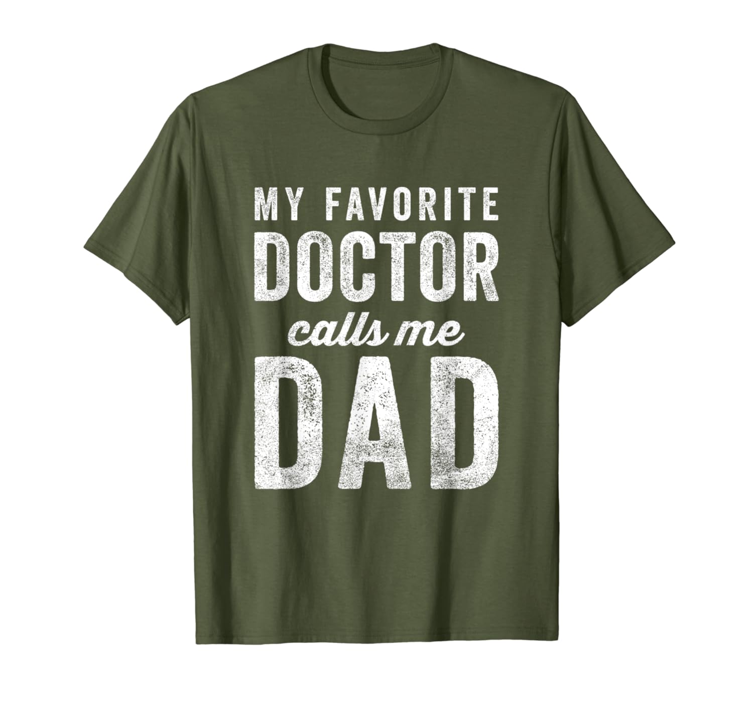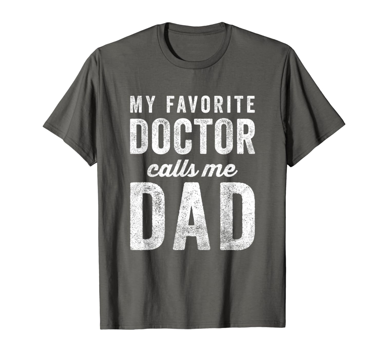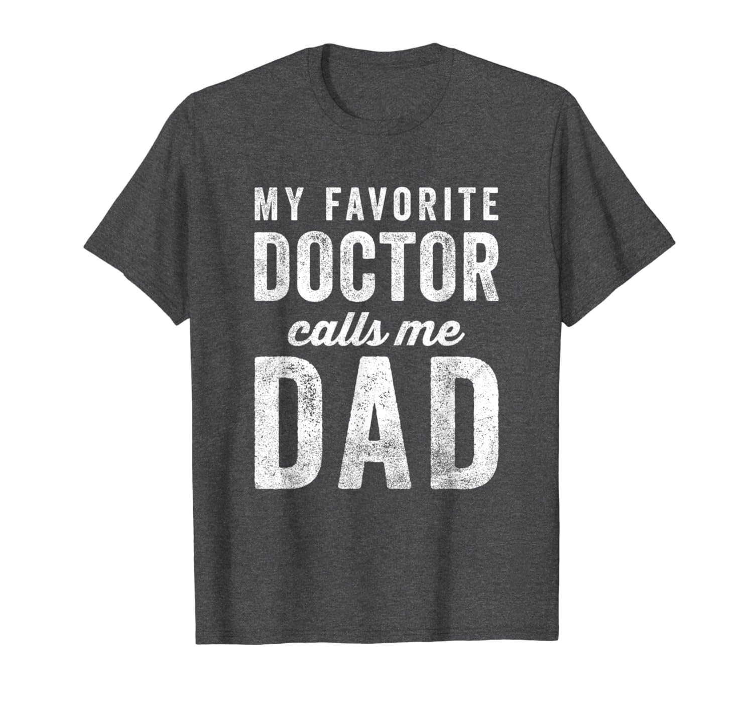 Solid colors: 100% Cotton; Heather Grey: 90% Cotton, 10% Polyester; All Other Heathers: 50% Cotton, 50% Polyester; Imported; Machine wash cold with like colors, dry low heat; My Favorite Doctor Calls Me Dad Fathers Day shirt for dad from daughter or son who is a doctor or attends medical school. Gift for Dad or Stepdad on Fathers Day. Cool dad gift from daughters, son, granddaughters, grandsons, stepdaughters or stepsons.; Funny Fathers Day Shirt for Dad. Cool gift for dad on Fathers Day, Dads birthday or Grandfathers birthday. Click our brand name for more designs and style options.; Lightweight, Classic fit, Double-needle sleeve and bottom hem