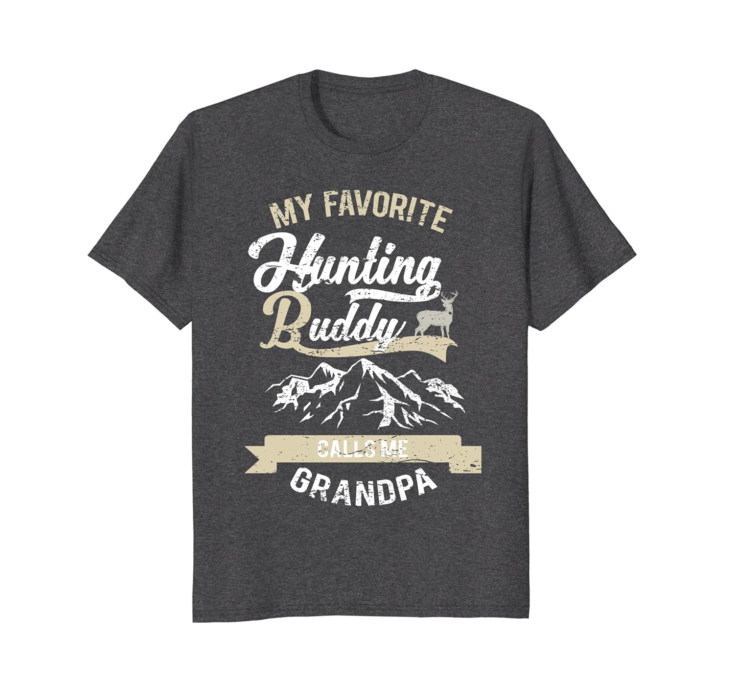 Solid colors: 100% Cotton; Heather Grey: 90% Cotton, 10% Polyester; All Other Heathers: 50% Cotton, 50% Polyester; Imported; Machine wash cold with like colors, dry low heat; Novelty deer hunting tshirt sure to get the attention of the deer hunting lovers in your family.; My favorite hunting buddy calls me Grandpa funny deer hunting t shirt. Click the Add to Cart button and buy a shirt today!; Lightweight, Classic fit, Double-needle sleeve and bottom hem