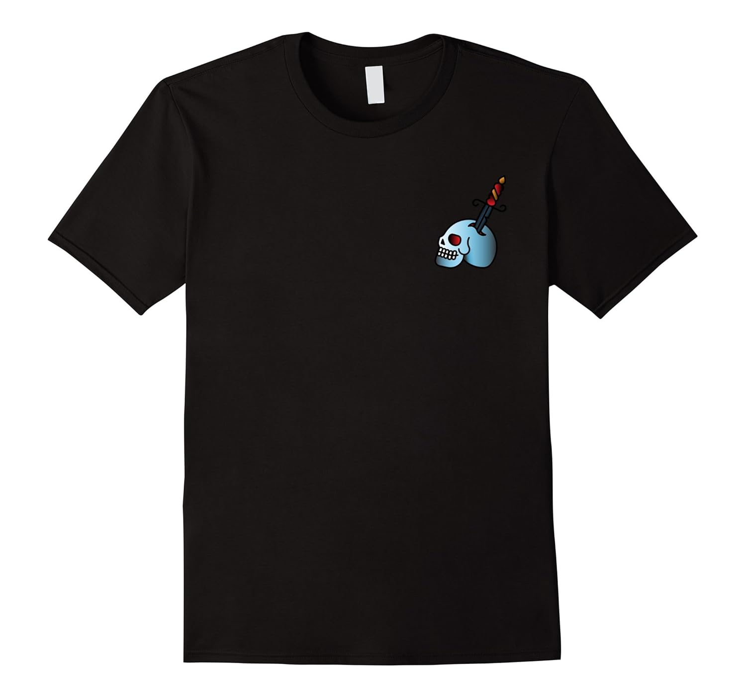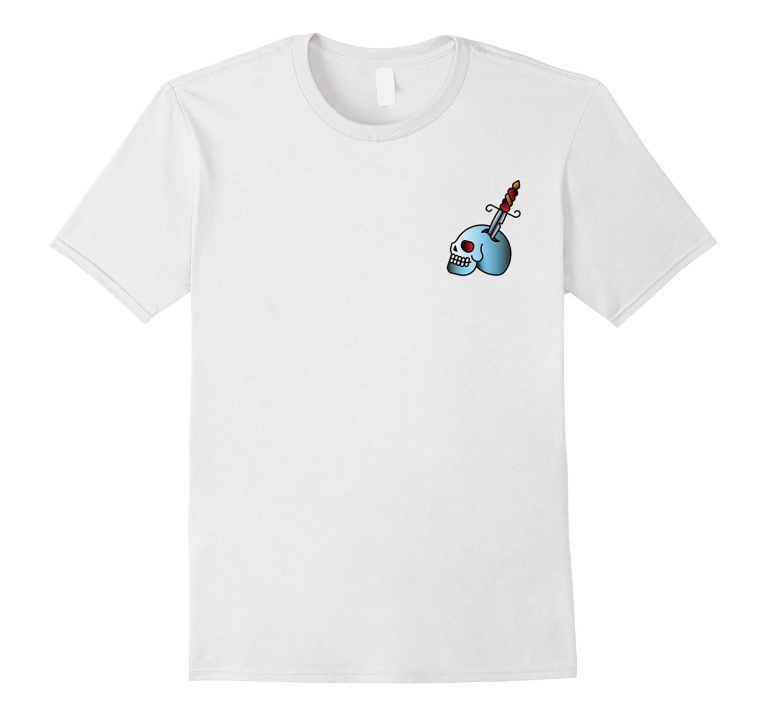Solid colors: 100% Cotton; Heather Grey: 90% Cotton, 10% Polyester; All Other Heathers: 65% Cotton, 35% Polyester; Imported; Machine wash cold with like colors, dry low heat; This is a simple, iconic tee shirt that is great for any casual occasion or just for an everyday casual look while walking, working out, or traveling. This t-shirt is designed and printed to be fitted. For a more loose fit, please order a size up.; Stabbed Skull Casual Graphic T-Shirt; Lightweight, Classic fit, Double-needle sleeve and bottom hem