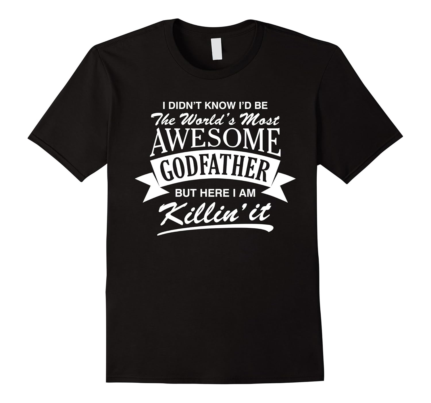 Solid colors: 100% Cotton; Heather Grey: 90% Cotton, 10% Polyester; All Other Heathers: 65% Cotton, 35% Polyester, Imported, Machine wash cold with like colors, dry low heat, “I didn”t know I”d be the world”s most awesome new godfather but here I am killing it” tee shirt. Cool and funny birthday present; special occasion, anniversary, humorous Father”s Day or holiday gift for godfather. Lightweight, Classic fit, Double-needle sleeve and bottom hem