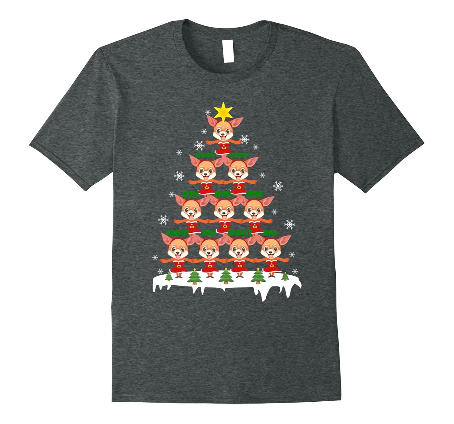 Solid colors: 100% Cotton; Heather Grey: 90% Cotton, 10% Polyester; All Other Heathers: 65% Cotton, 35% Polyester, Imported, Machine wash cold with like colors, dry low heat, Merry Christmas chihuahua t-shirt, Lightweight, Classic fit, Double-needle sleeve and bottom hem