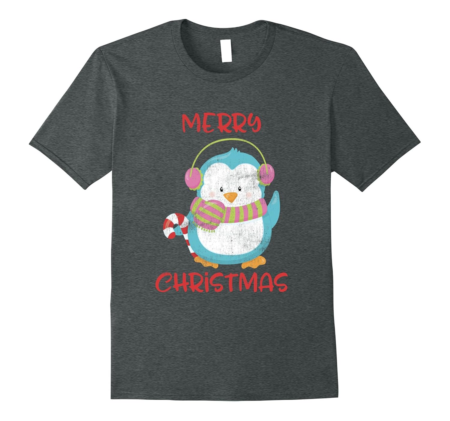 Solid colors: 100% Cotton; Heather Grey: 90% Cotton, 10% Polyester; All Other Heathers: 65% Cotton, 35% Polyester; Imported; Machine wash cold with like colors, dry low heat; This cute Penguin Merry Christmas vintage print shirt will be a hit for kids, Women and Men at school, holiday parties and Black Friday shopping.; We have Santa, deer, snowman, Christmas tree, ornaments, and stockings shirts in our store.; Lightweight, Classic fit, Double-needle sleeve and bottom hem