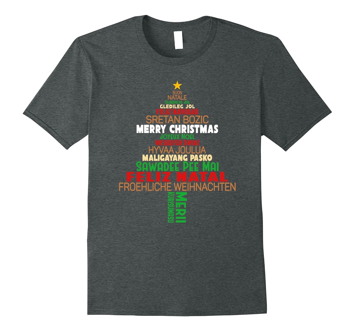 Solid colors: 100% Cotton; Heather Grey: 90% Cotton, 10% Polyester; All Other Heathers: 65% Cotton, 35% Polyester, Imported, Machine wash cold with like colors, dry low heat, Celebrate Christmas on an international level this year. This unique Christmas t shirt says Merry Christmas is English, Spanish, German, French, Japanese, Tagalog, Italian, Portuguese and other languages. The perfect Christmas gift for adults and children. Great Xmas shirt for students, teachers, nurses, doctors, mom, dad, children, grandparents, neighbors and coworkers. Where it to a Christmas tree festival or to sing Christmas carols. The perfect gift tshirt for an international traveler. Feliz Navidad!, Lightweight, Classic fit, Double-needle sleeve and bottom hem