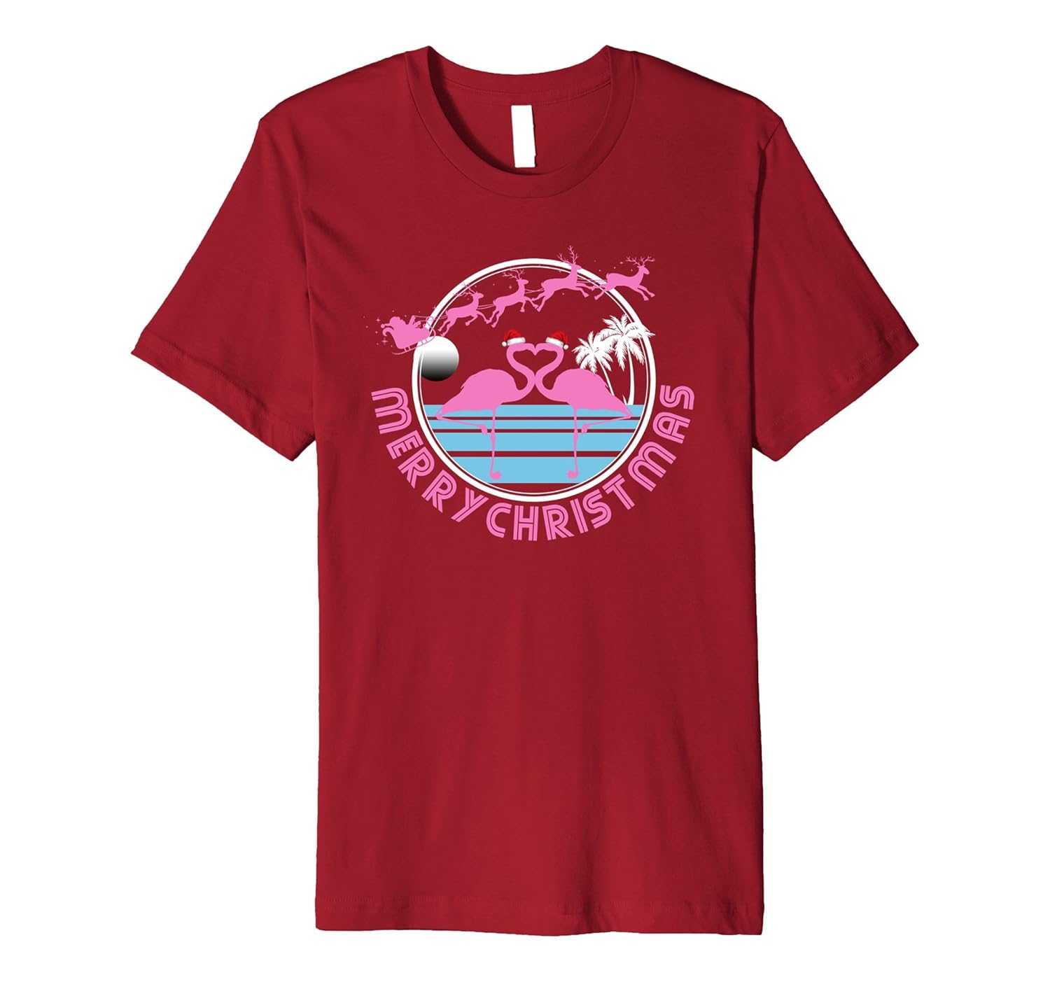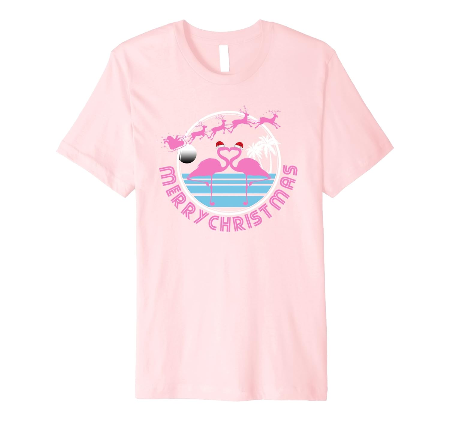 Merry Christmas Pink Flamingos T-Shirt Retro Gift-ANZ