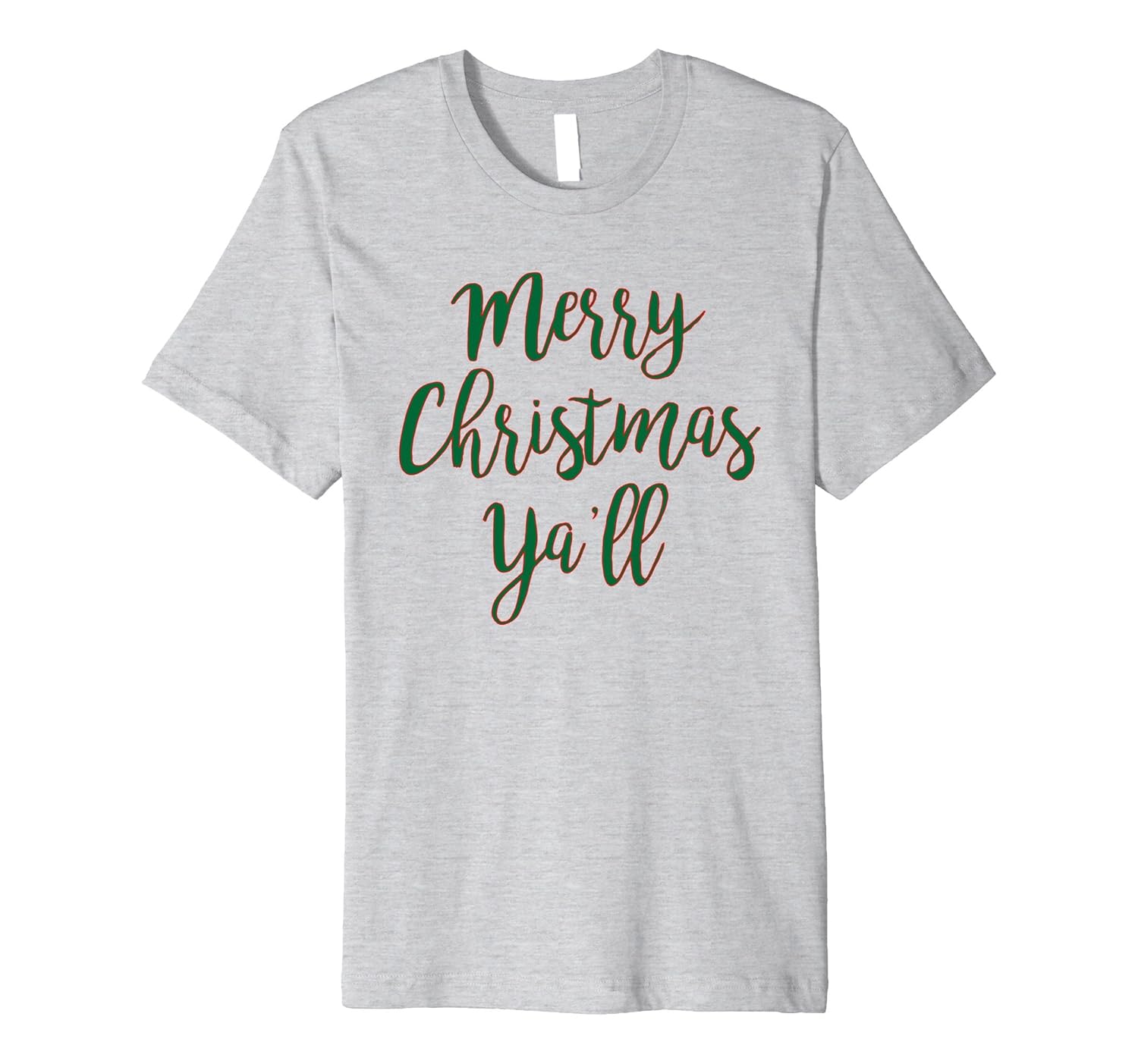 Solid colors: 100% Cotton; Heather Grey: 90% Cotton, 10% Polyester; All Other Heathers: 58% Cotton, 42% Polyester; Imported; Machine wash cold with like colors, dry low heat; If you love Christmas and youre from the South, then this shirt is perfect for you to wear on Christmas morning.; Fit: Slim (consider ordering a larger size for a looser fit); Merry Christmas Yall is the perfect phrase for you to wear during the holiday season. Beat everyone to saying it and just wear your southern twang on your shirt. Perfect Christmas pajama top, or Christmas clothes for women.; This premium t-shirt is made of lightweight fine jersey fabric