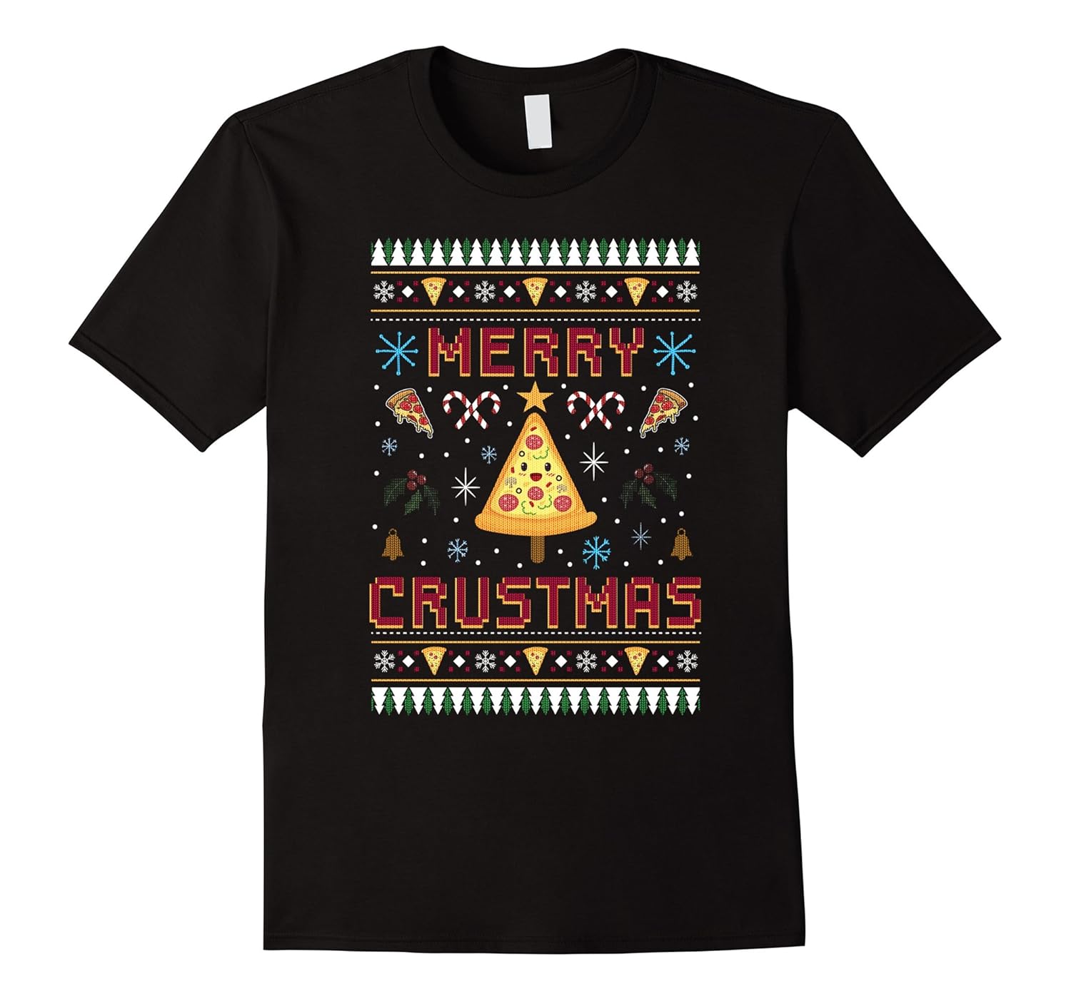 Merry Crustmas Christmas Ugly Sweater Tee Funny Pizza Lover-ANZ