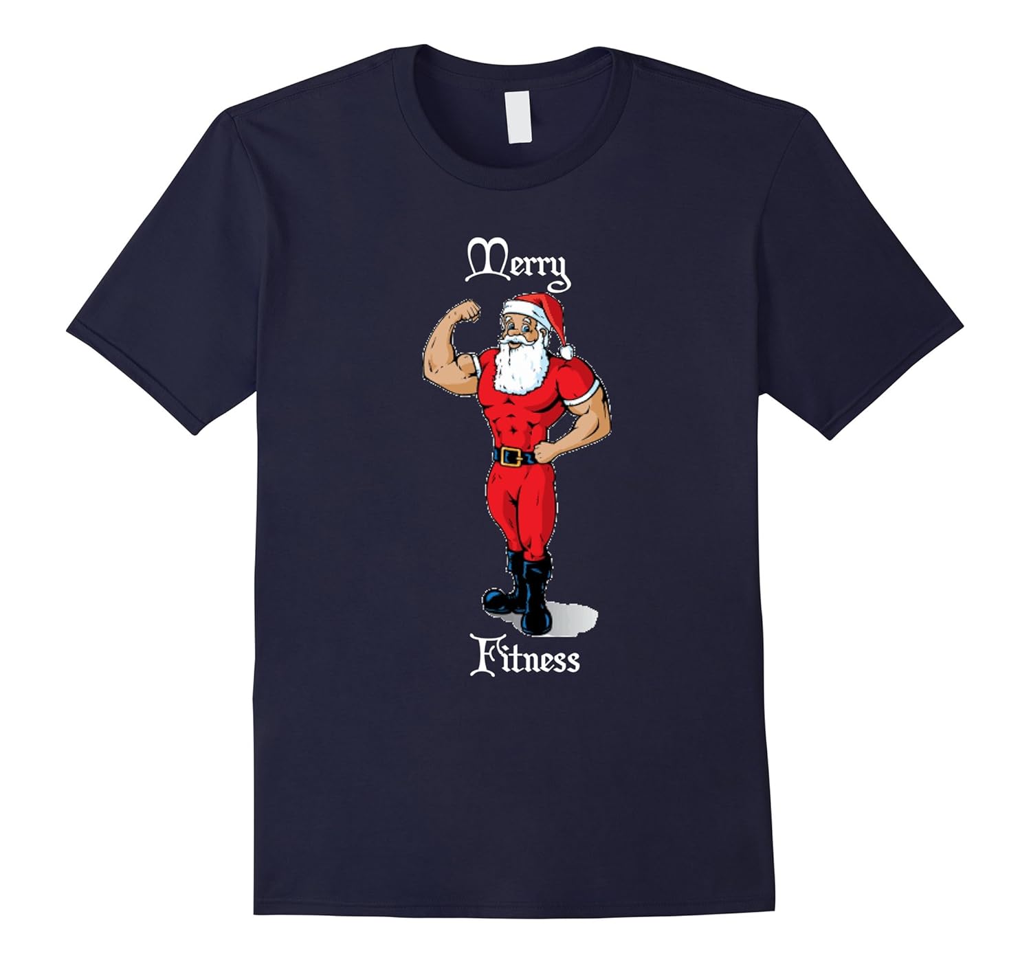 Solid colors: 100% Cotton; Heather Grey: 90% Cotton, 10% Polyester; All Other Heathers: 65% Cotton, 35% Polyester, Imported, Machine wash cold with like colors, dry low heat, This Merry Fitness Buff Santa Christmas Shirt makes a great Christmas gift for the fitness fanatic, weightlifter, etc. in your life. Great for home, gym, Christmas and holiday parties, etc. Lightweight, Classic fit, Double-needle sleeve and bottom hem