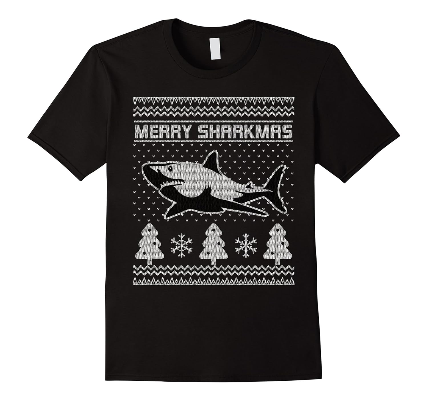Solid colors: 100% Cotton; Heather Grey: 90% Cotton, 10% Polyester; All Other Heathers: 65% Cotton, 35% Polyester; Imported; Machine wash cold with like colors, dry low heat; Merry Sharkmas Ugly Christmas Sweater T-shirt for Men and Women. Christmas Gift. Shark Gift.; Maybe a mom, dad, wife, husband, boyfriend, girlfriend, friend or co-worker. Great gift for Christmas, Birthdays, Anniversaries, Weddings or ANY occasion!; Lightweight, Classic fit, Double-needle sleeve and bottom hem