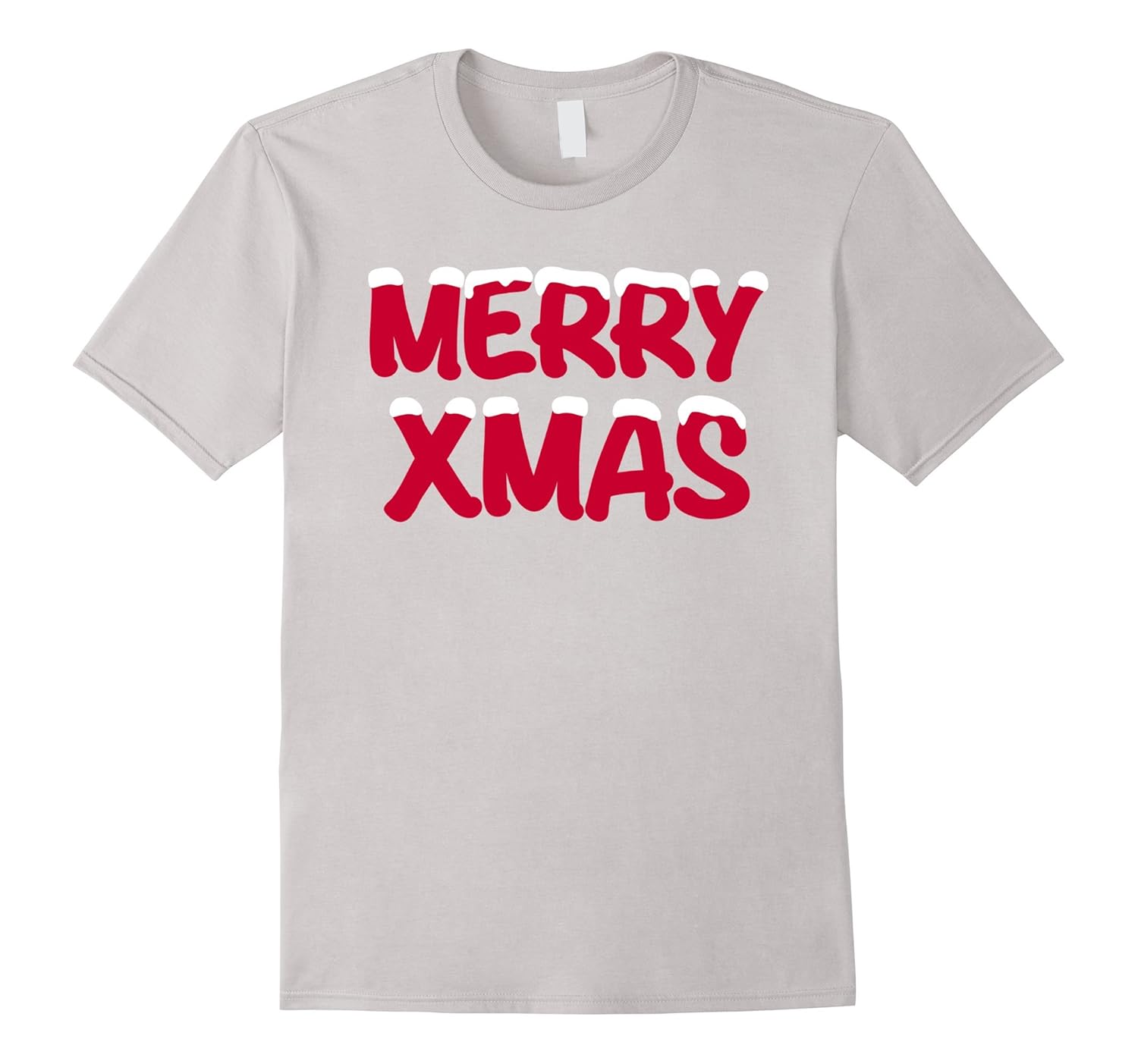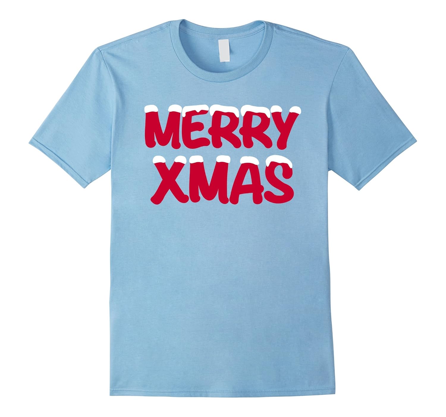 Solid colors: 100% Cotton; Heather Grey: 90% Cotton, 10% Polyester; All Other Heathers: 65% Cotton, 35% Polyester; Imported; Machine wash cold with like colors, dry low heat; Merry Xmas slogan with snow for all celebrating christmas and waiting for santa claus.; Lightweight, Classic fit, Double-needle sleeve and bottom hem