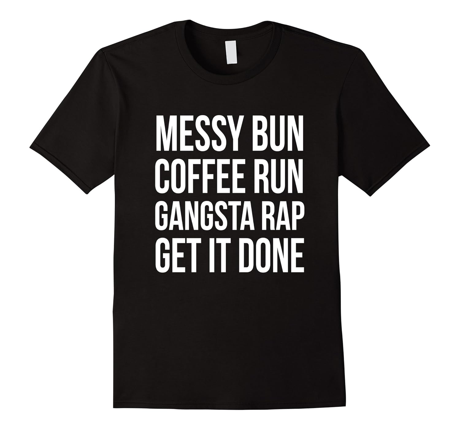 Solid colors: 100% Cotton; Heather Grey: 90% Cotton, 10% Polyester; All Other Heathers: 65% Cotton, 35% Polyester, Imported, Machine wash cold with like colors, dry low heat, This Messy Bun Coffee Run Gangsta Rap Get It Done shirt is for all the hardworking moms out there. It”s not easy being a mom and you deserve appreciation! Treat yourself and buy this funny mom shirt; sure to get a laugh with every wear. This mom shirt is also a great gift for Christmas, Mothers Day, birthdays and any day you want to show appreciation to a mother! For a looser fit please order a size up. Lightweight, Classic fit, Double-needle sleeve and bottom hem