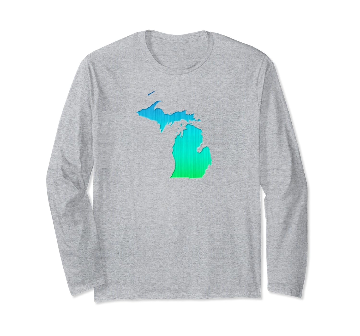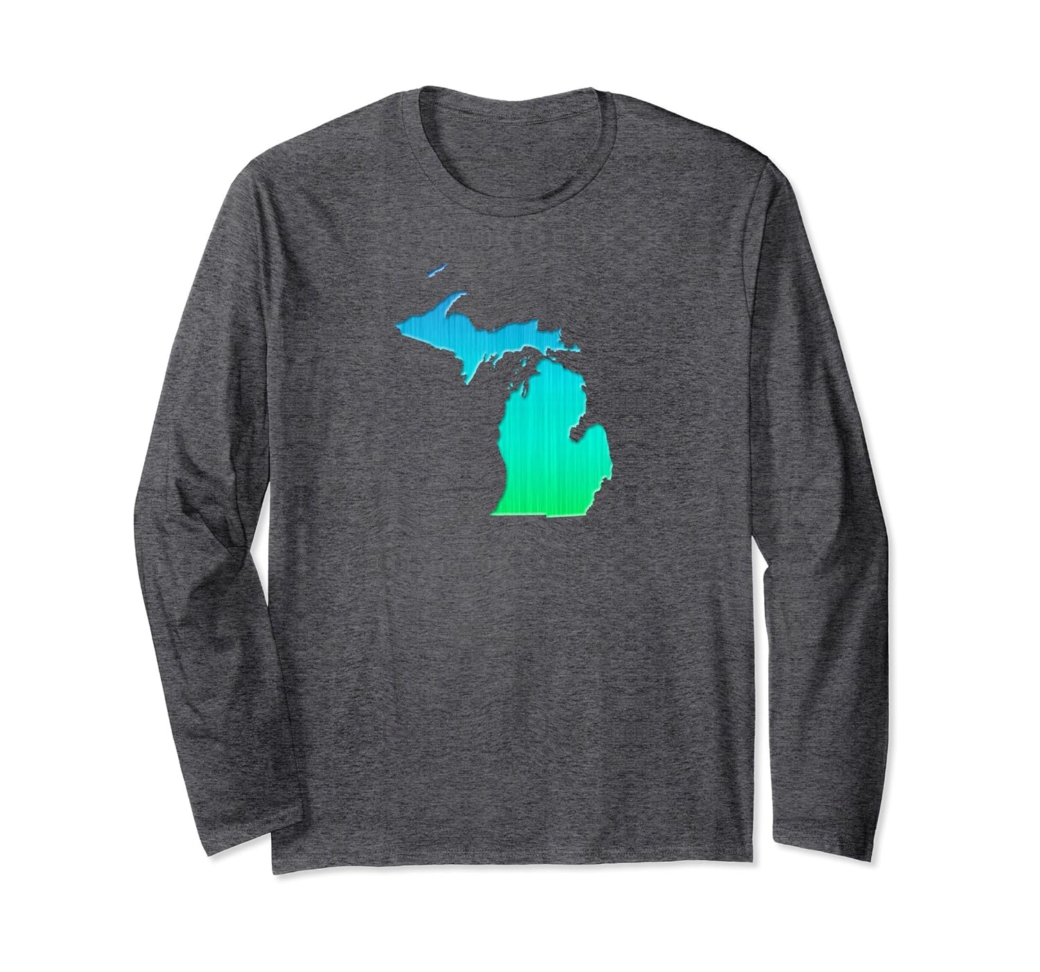 Solid colors: 100% Cotton; Heather Grey: 90% Cotton, 10% Polyester; All Other Heathers: 50% Cotton, 50% Polyester; Imported; Machine wash cold with like colors, dry low heat; Michigan Tee Shirt for Michiganders and visitors that love the Great Lakes State. Makes great gifts or souvenirs.; Show your Michigan Pride with this blue green ombre design.; Lightweight, Classic fit, Double-needle sleeve and bottom hem