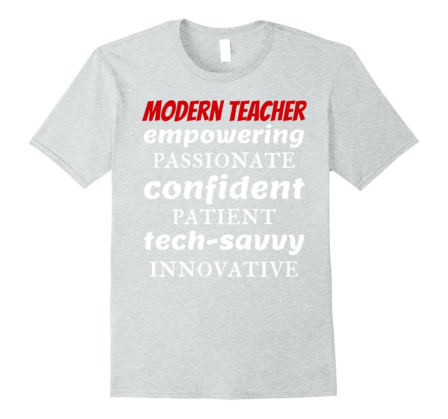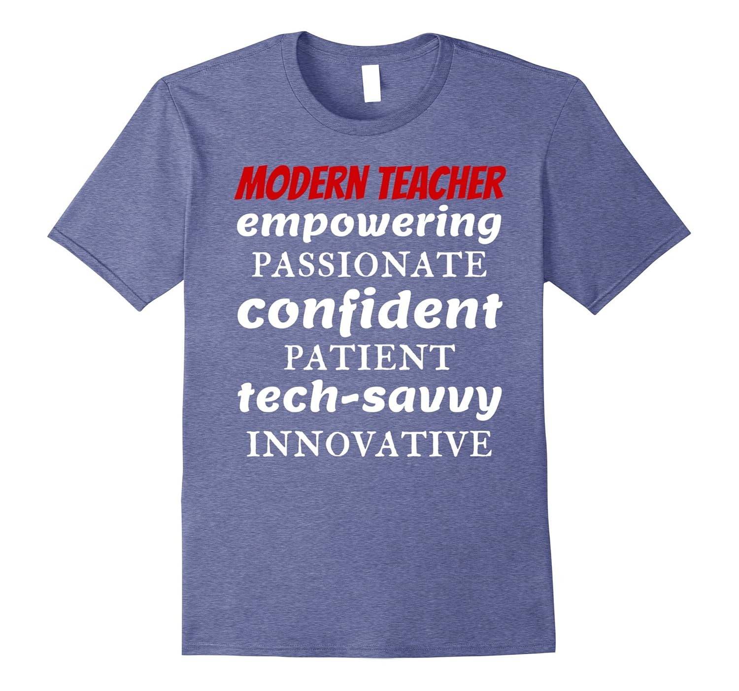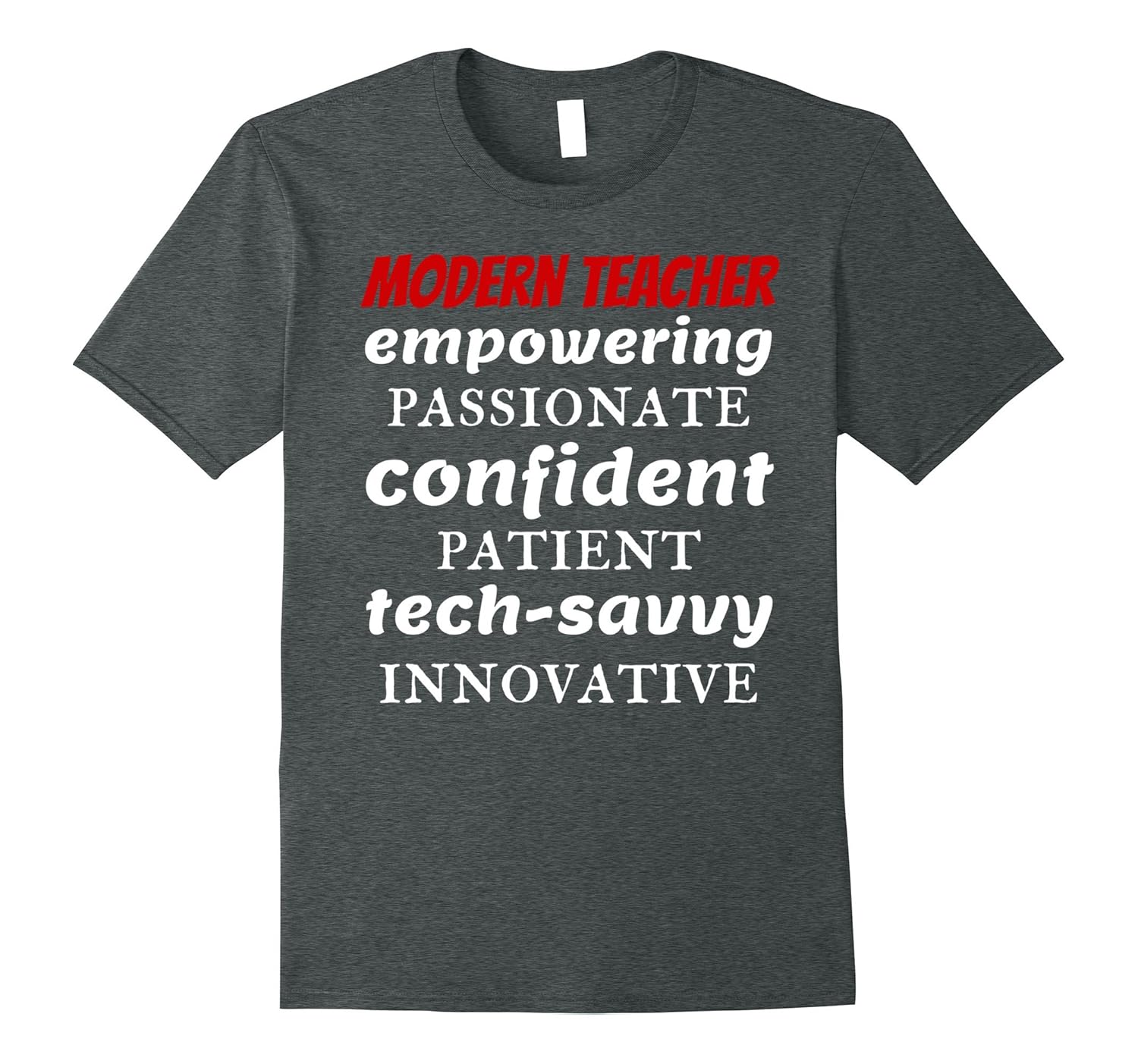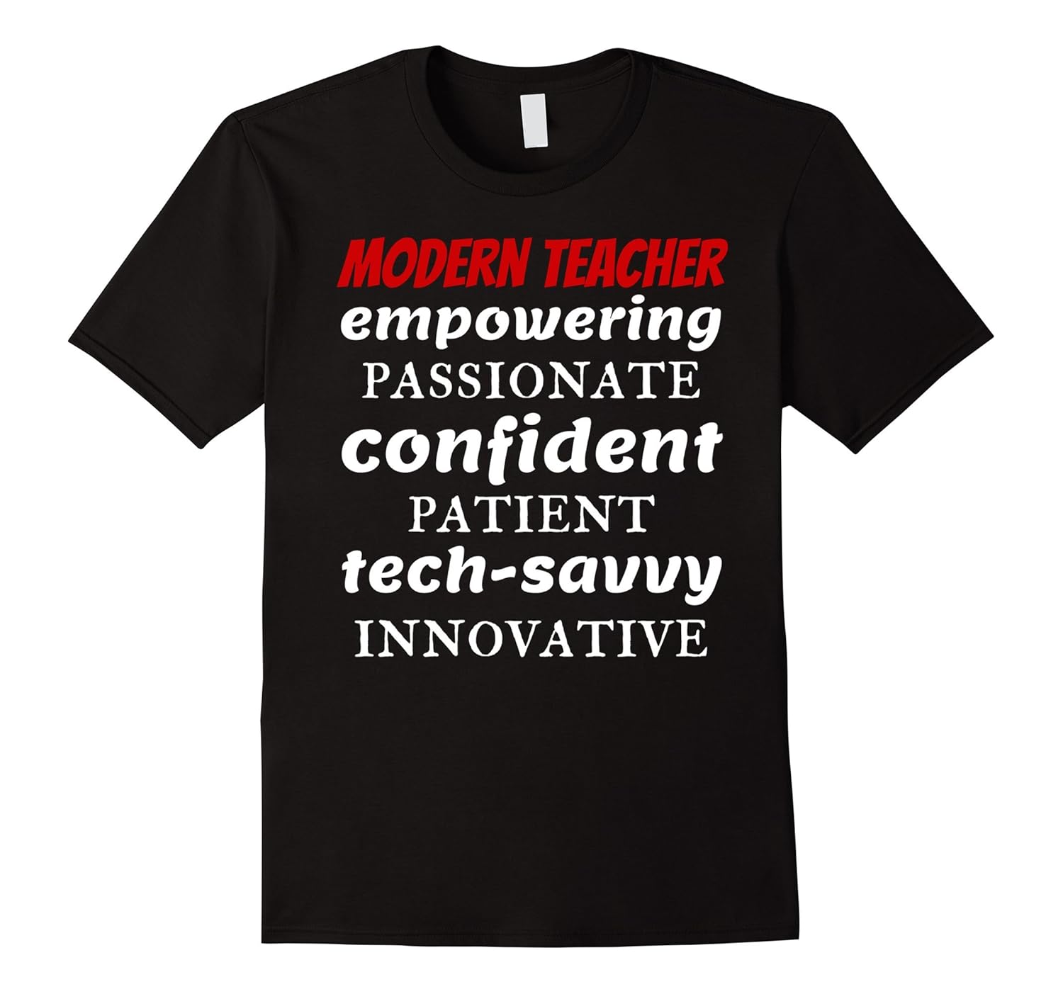Solid colors: 100% Cotton; Heather Grey: 90% Cotton, 10% Polyester; All Other Heathers: 65% Cotton, 35% Polyester, Imported, Machine wash cold with like colors, dry low heat, ORIGINAL TEXT AND DESIGN! What are the qualities of a modern teacher. Do you possess them. If so, buy this t-shirt and inspire other teachers to adapt to the fast-changing demands and advancements in education and technology. Teachers must lead and educate students to develop 21st-century skills. Thus, teachers must adapt to the global age and influence students by example. Be proud and show everyone that you have the required competencies. Lightweight, Classic fit, Double-needle sleeve and bottom hem