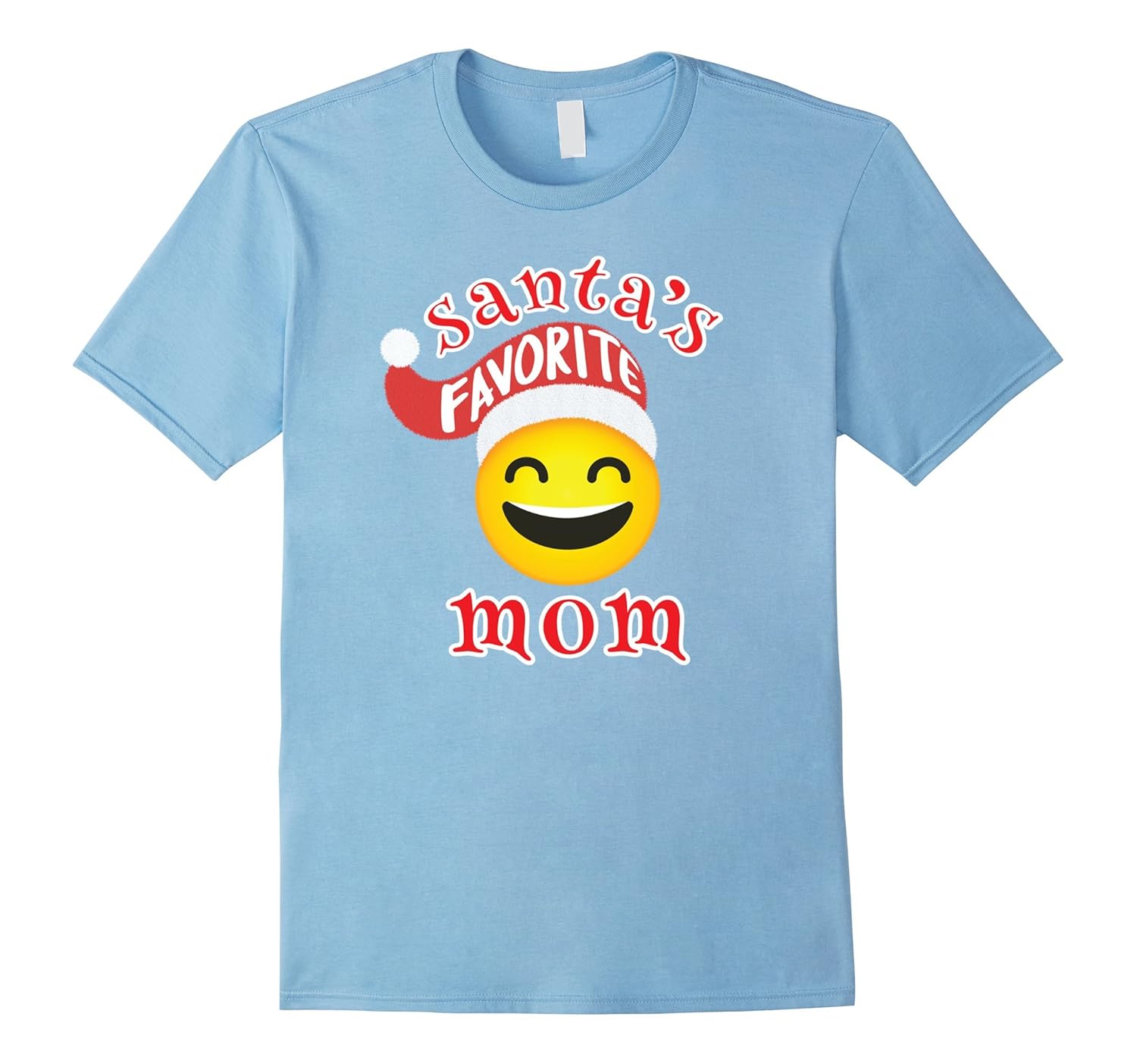 Solid colors: 100% Cotton; Heather Grey: 90% Cotton, 10% Polyester; All Other Heathers: 65% Cotton, 35% Polyester; Imported; Machine wash cold with like colors, dry low heat; Spread Christmas cheer with this Santas Favorite Mom laughing emoji shirt for your mom. Get a set of Santas Favorite smiley face t shirts for the whole family by clicking on the brand name above to grab the perfect one for everyone.; This Santas Favorite Mom t shirt is fitted. For a looser fit please order a size larger than typical. A great gift for a Christmas birthday. Grab everyone a shirt from this collection and make a delightful family photo for your Christmas letter.; Lightweight, Classic fit, Double-needle sleeve and bottom hem