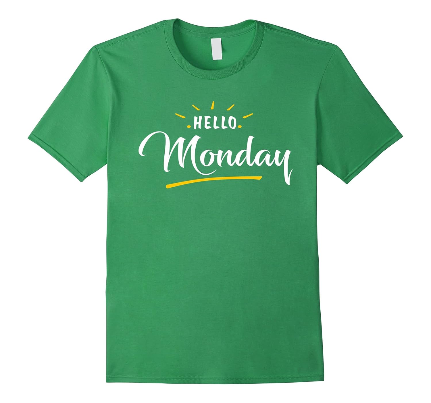 Solid colors: 100% Cotton; Heather Grey: 90% Cotton, 10% Polyester; All Other Heathers: 65% Cotton, 35% Polyester, Imported, Machine wash cold with like colors, dry low heat, Monday T-shirt, Text on the shirt reads: Hello Monday, Lightweight, Classic fit, Double-needle sleeve and bottom hem